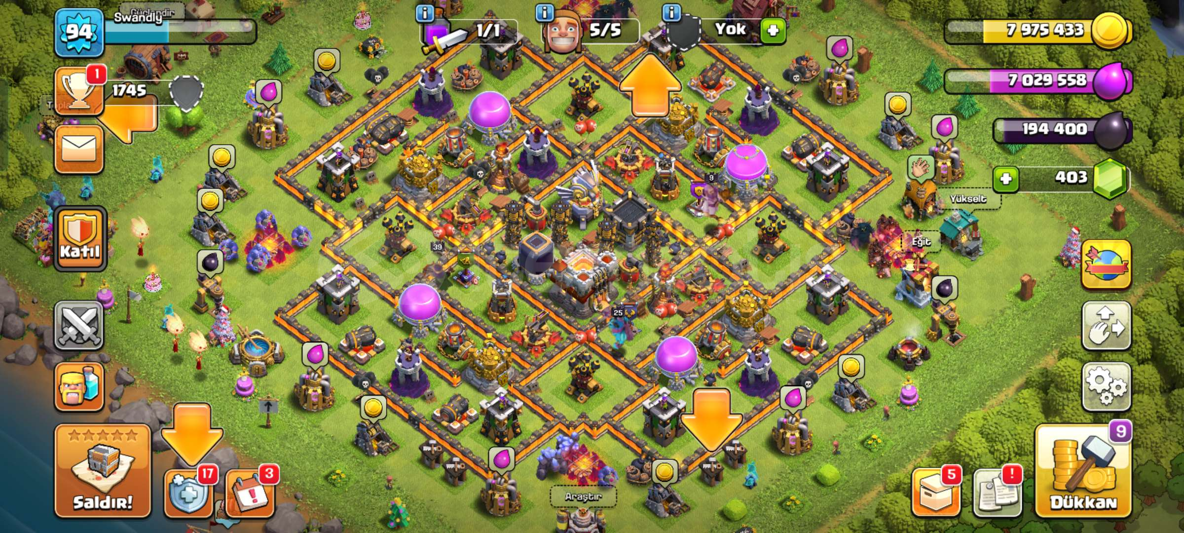 CLASH ROYALE:10 EVRİMLİ4 ADET 10 SEVİYE KART DİĞERLERİ EN AZ 11 SEVİYECLASH OF CLANS:94 SEVİYE5 İNŞAATÇILI1745 KUPAPAZARLIK OLUR EPOSTA DEVİRLİ