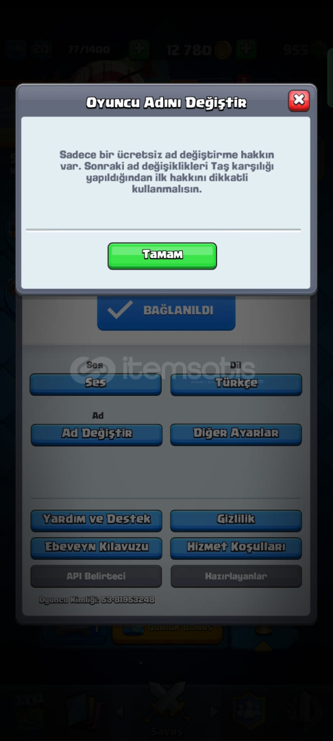 2100 KUPA -955 ELMAS -12.750 ALTIN -( ÜCRETSİZ İSİM DEĞİŞTİRME HAKKI )( MAİL DEĞİŞİMİ OLACAKTIR )