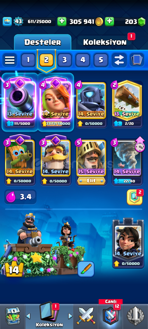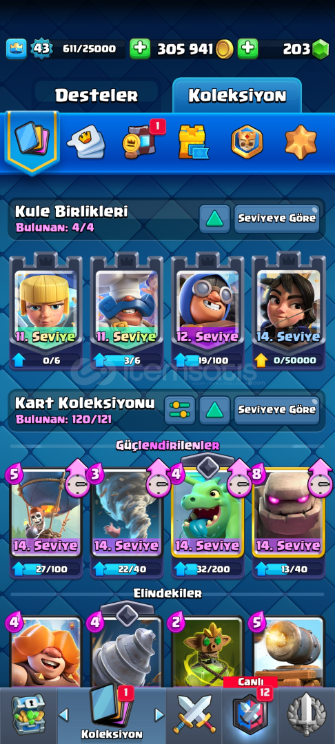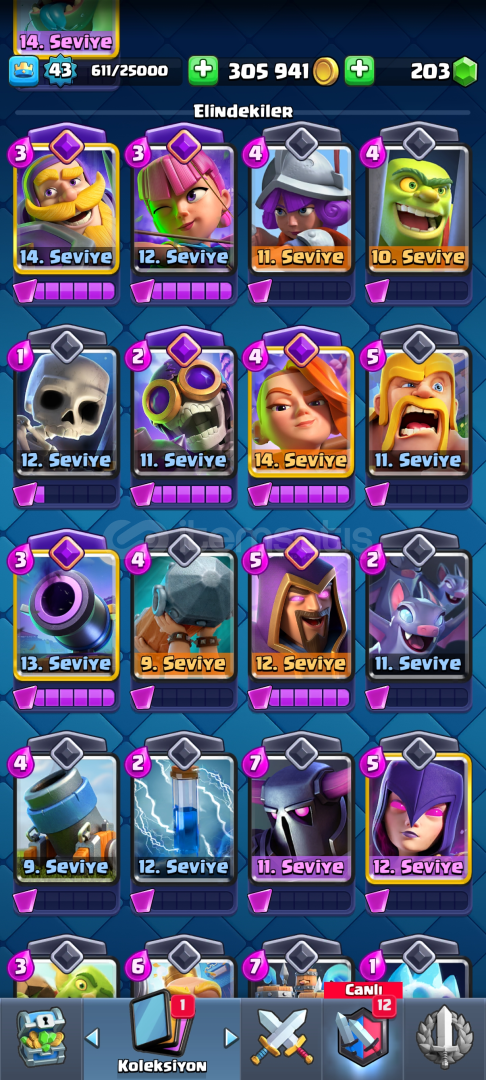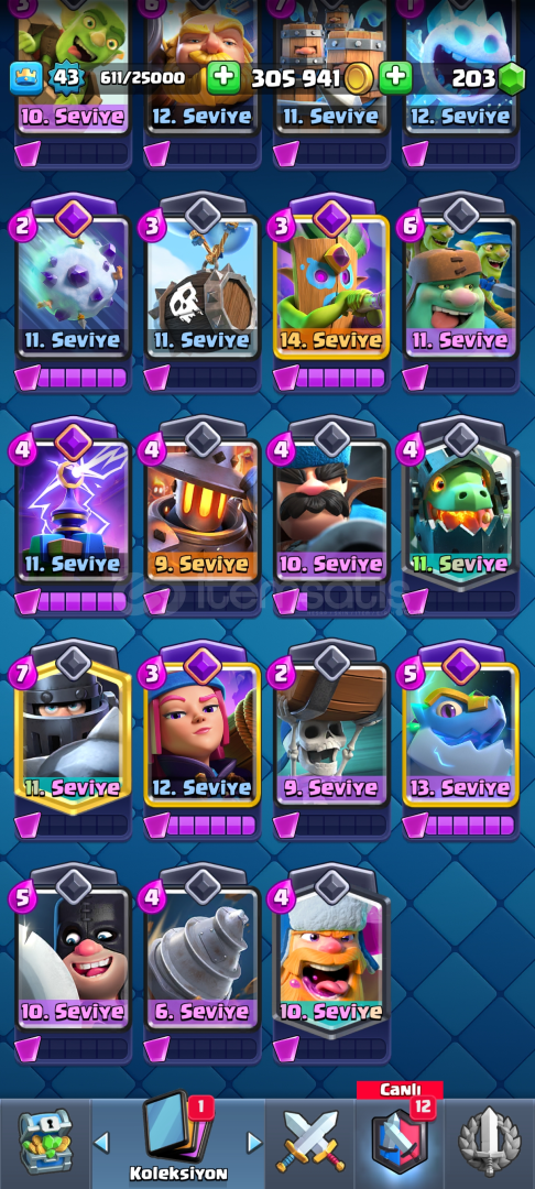 Hesapta Tüm Kartlar Vardır Sadece küçük Prens yok11 Evrime SahiptirHesap Koruması Aktif Değildir!!Pazarlık Azda Olsa Vardır