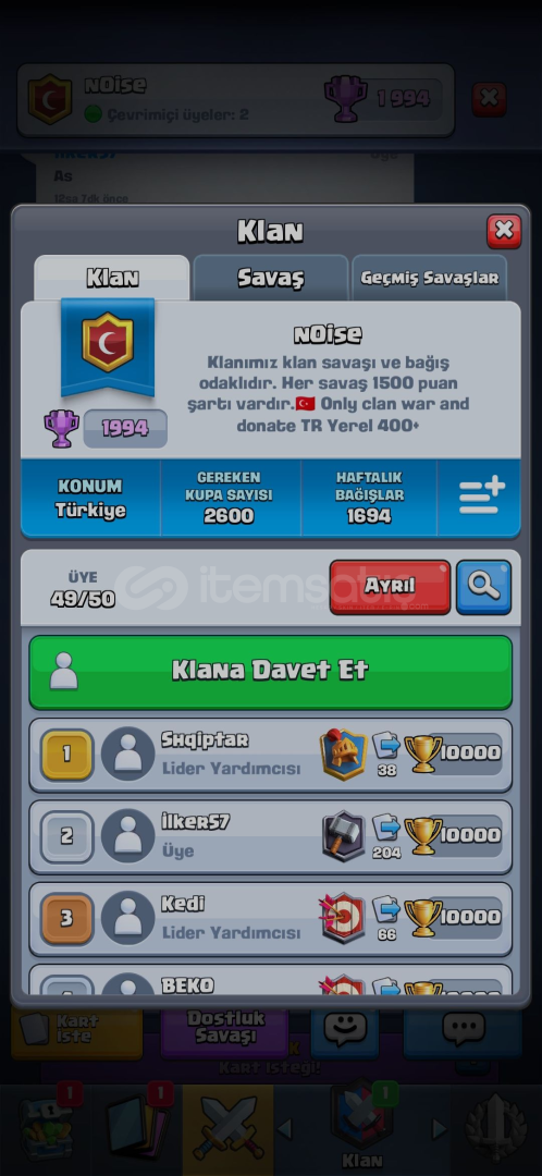 Liderlik verilecekKlan adı n0ise49/50 üye Aktif klan
