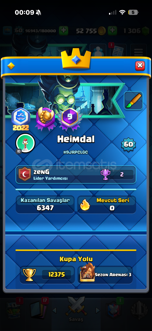 15 k görmüş hesap şuan 12300 kupa 60 lvl 9 yıllık 120 emoji ve efsanevi 30 yakın emoji vardır nadir nihai gormustürrr
