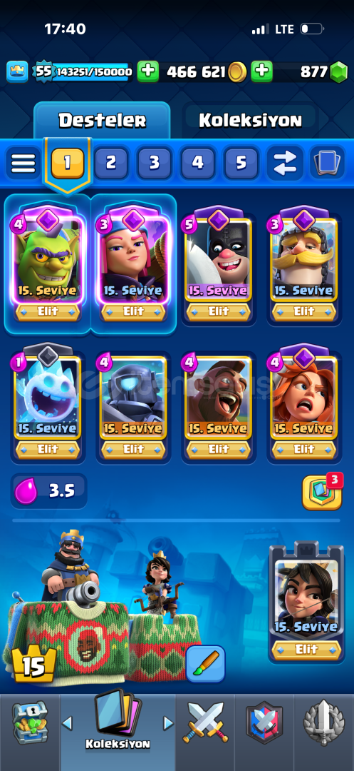 9 elit37 14 lvl kart13 evrim56 lvl Kuleler 15 seviye maxTüm kartlar açık98 emoji870 elmas 15k kupa1.lig max görülen lig şampiyon