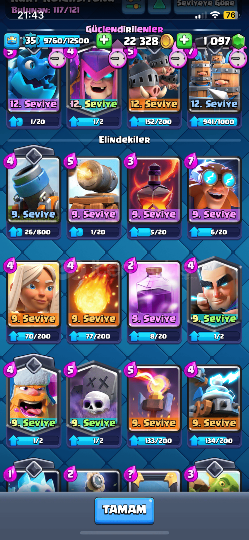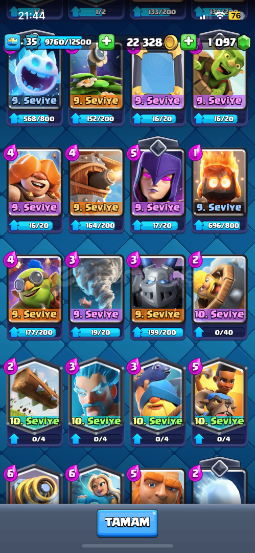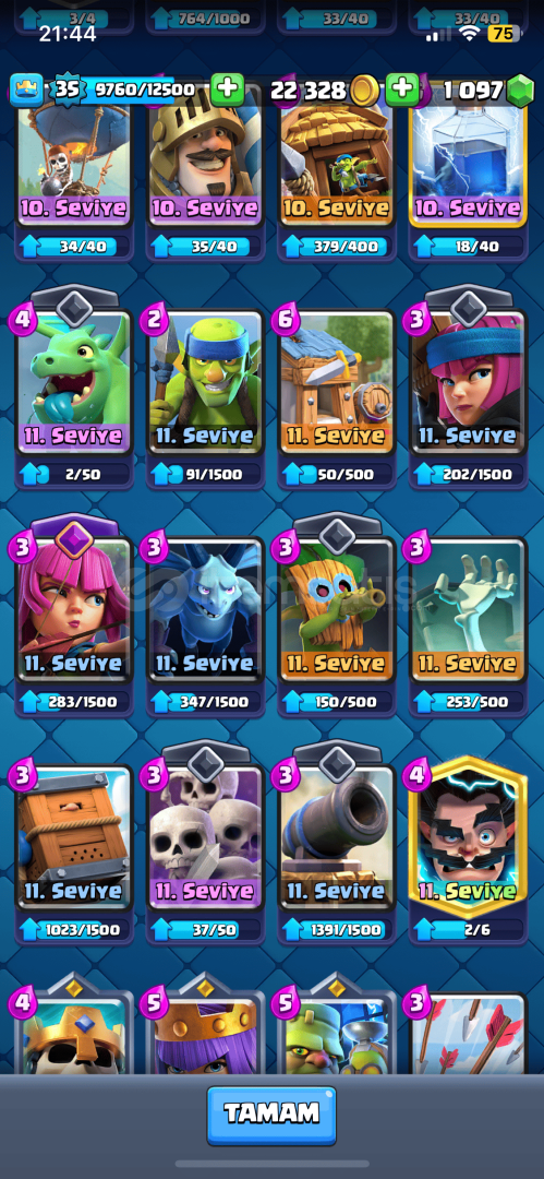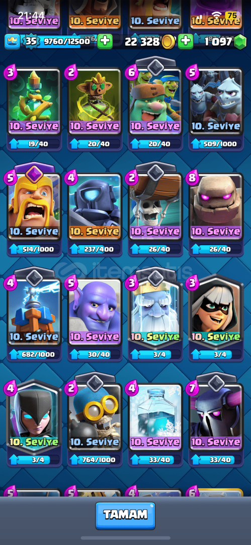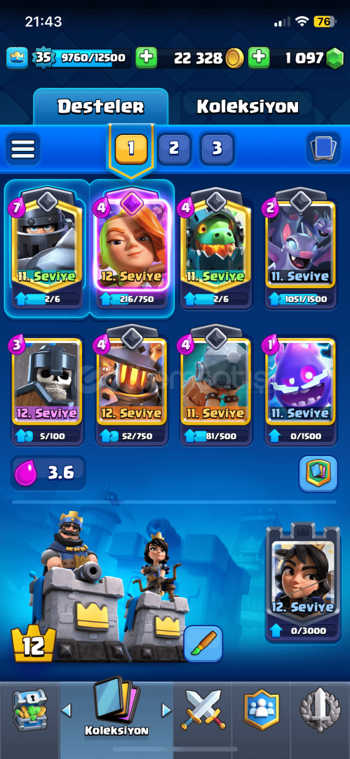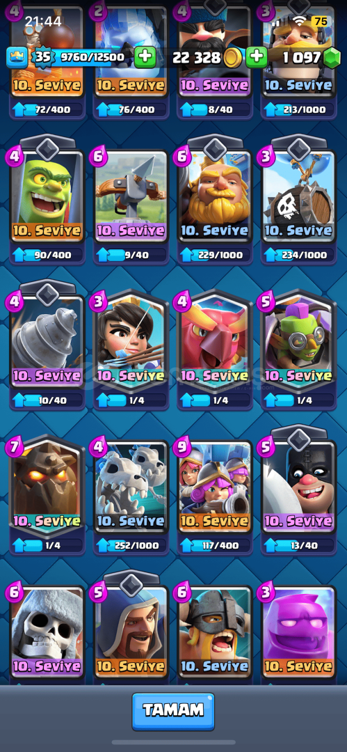 Clash Royale hesabımı satıyorum. Hesap aktif olarak oynanmış ve birçok kart yüksek seviyeye getirilmiştir. Kupası ve kaynaklarıyla hazır şekilde devredilecektir.