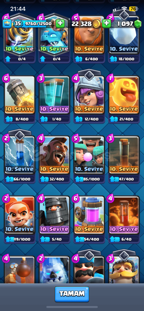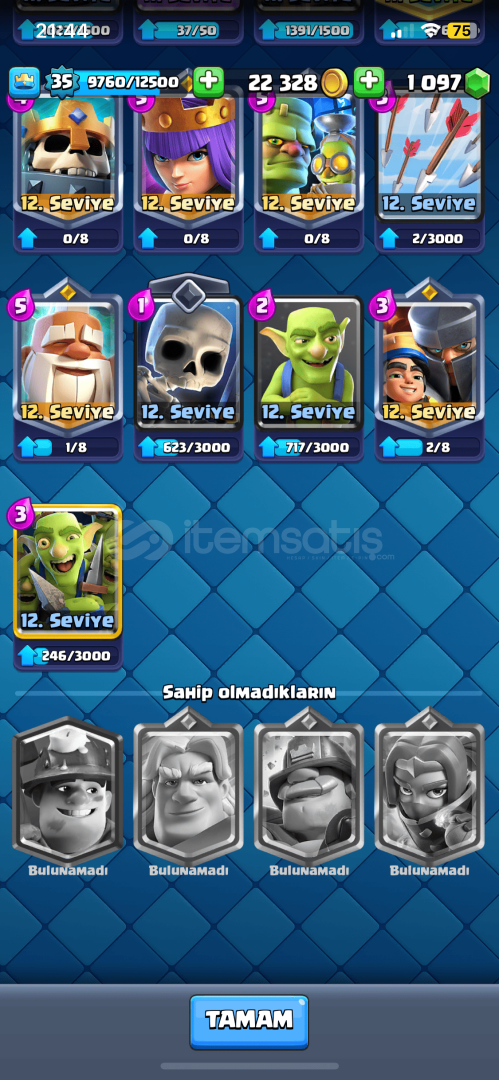 📜 Açıklama:Clash Royale hesabımı satıyorum. Hesap aktif olarak oynanmış ve birçok kart yüksek seviyeye getirilmiştir. Kupası ve kaynaklarıyla hazır şekilde devredilecektir.Hesap Özellikleri:👑 Seviye: 35🏆 Kupa: 6862💰 Altın: 70.913💎 Taş: 1097🎴 Birçok efsanevi ve güçlü deste hazırPass Royale ilerlemesi mevcutKartların ço...