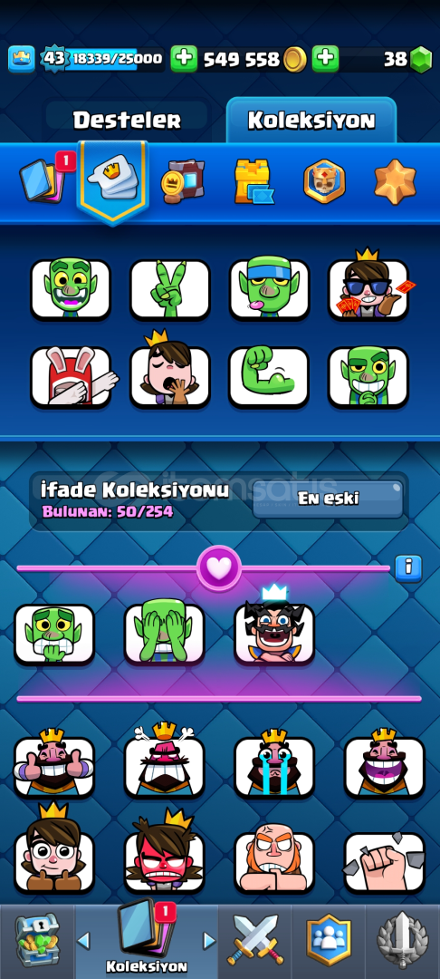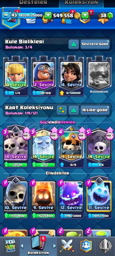 119 kart 10 açık evrim 5evrim parçası 8,5k kupa 50 ifade