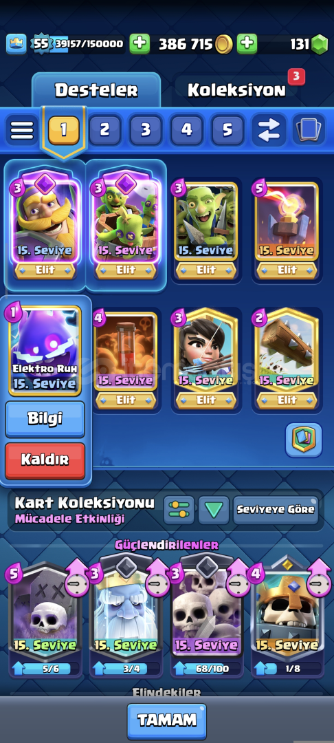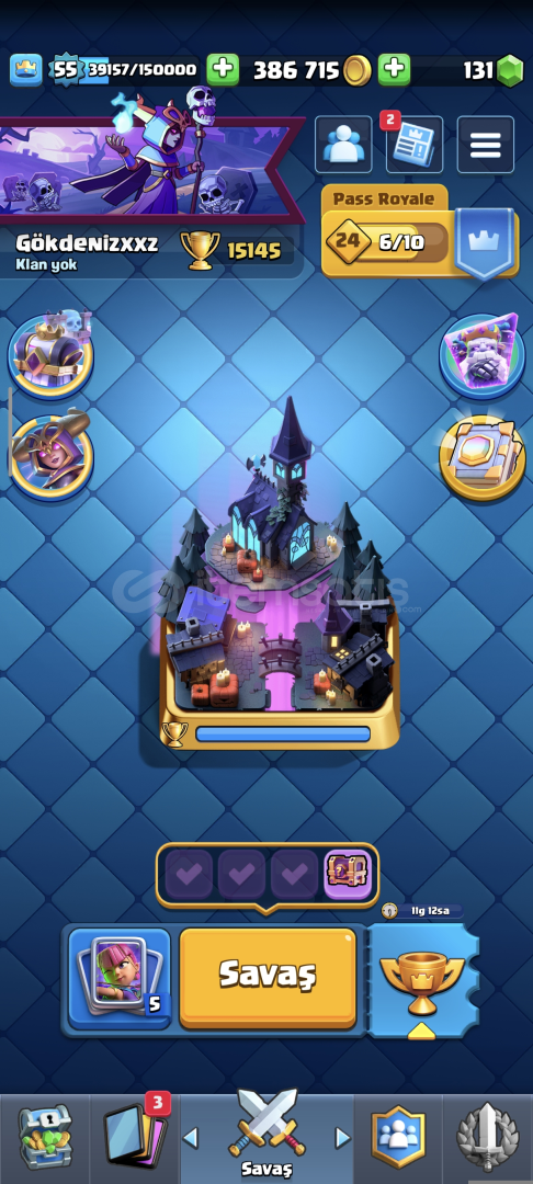 hesapta 11 elit kart var #CC2VY2Y0V royaleapi sitesinden bakabilirsiniz hesapta logbait destesi Max nihai şampiyon görmüş hesaptır