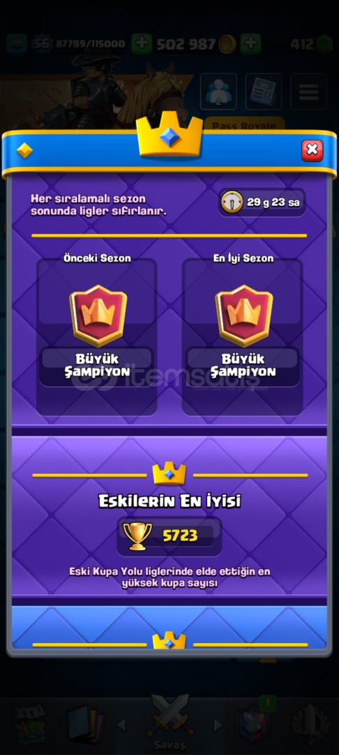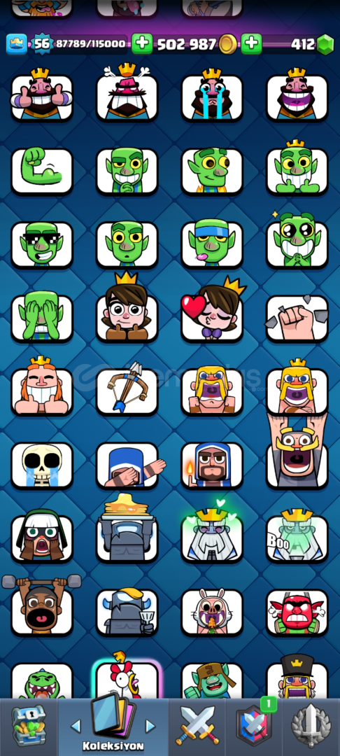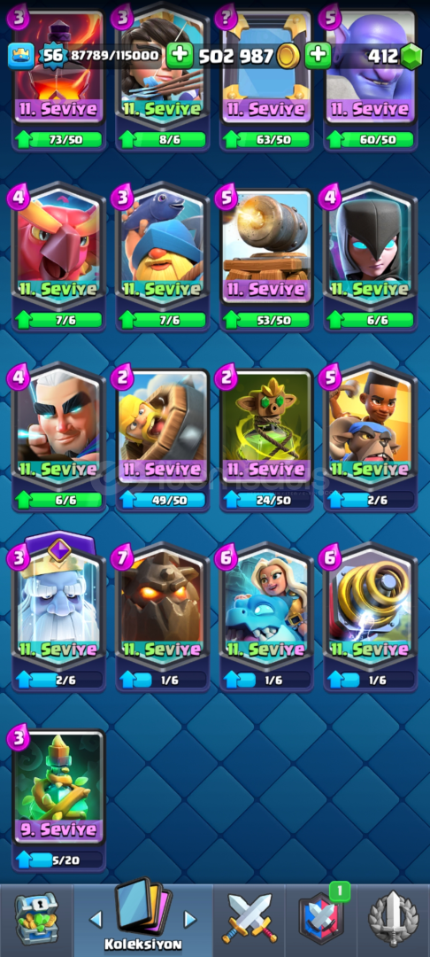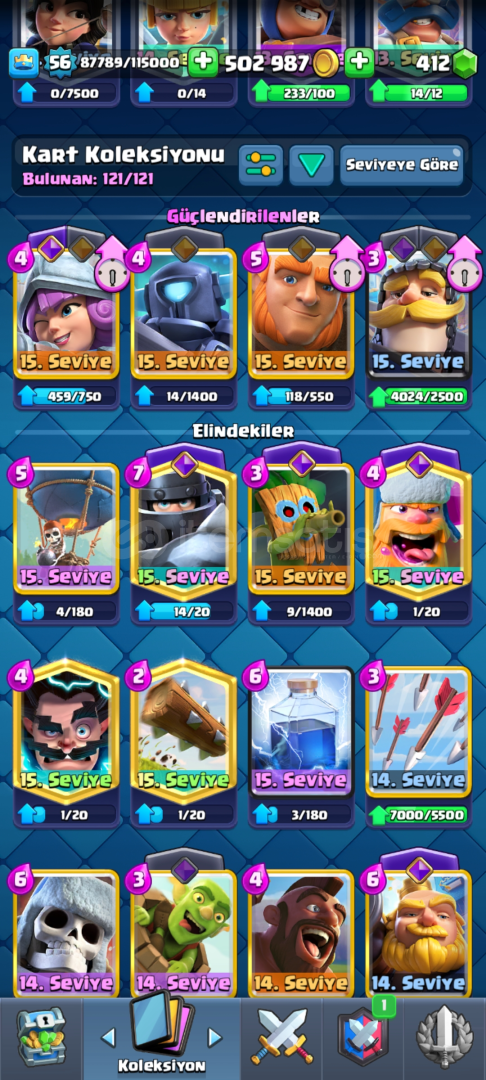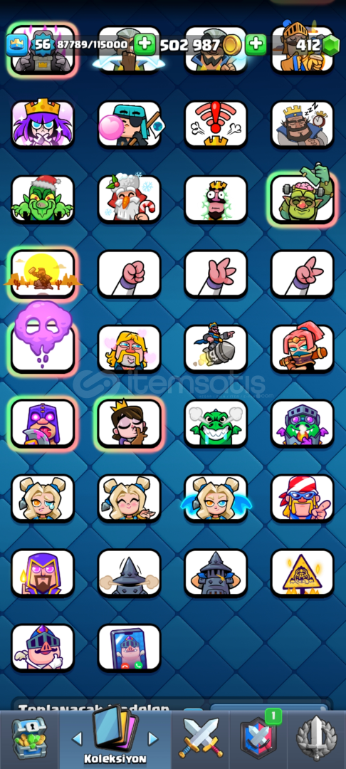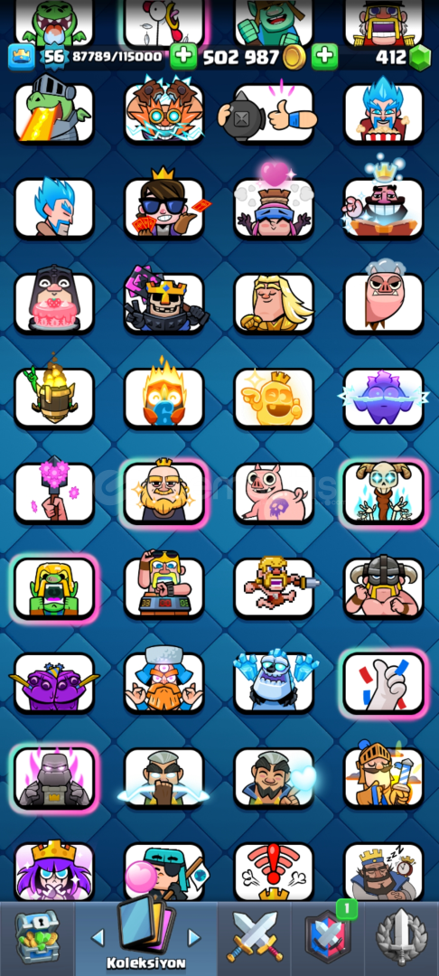 Elit seviye clash royale hesabı. Tüm kartlar açık ve minimum 10 seviye.Pek çok kart +13 seviye. Ligde Büyük şampiyon derecesi. 10000 kupa. 3 kez pass royale alındı hesaba harcanan toplam para 1500 tl. Türk Birliği #RQPGQQRV klanı kurucusu ve lideri olan hesap şiderlikle beraber devredilir. 117 farklı emoji 75 er tane flama ve çerçevesi var. 9 farklı kule görünümü ile koleksiyoncular içinde elit seviye oynamak isteyenler içinde harika hesap. Pazarlığa açıktır.