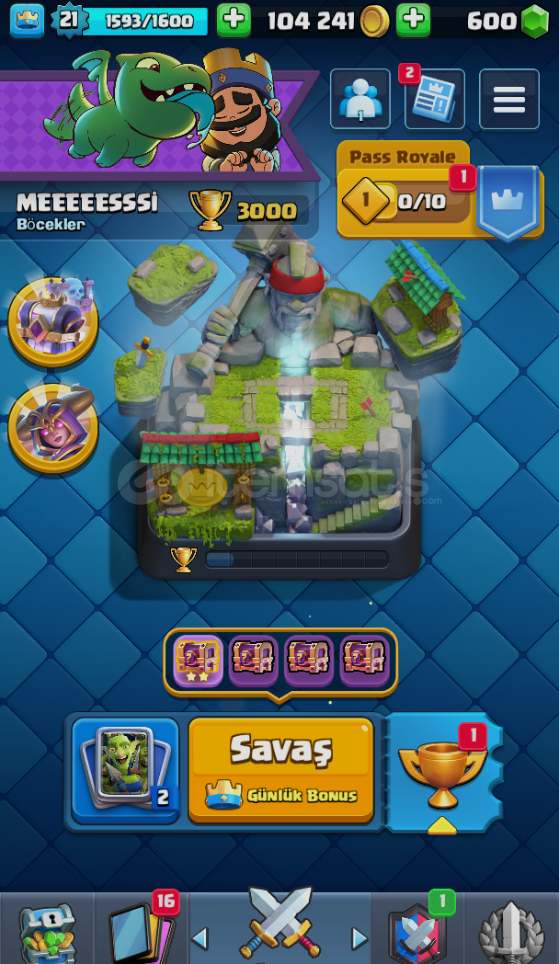 Hesap Supercell Id'e bağlıdır(E-posta değişikliği yapılır)600 taş vardır100k altın vardır21 sv hesaptır