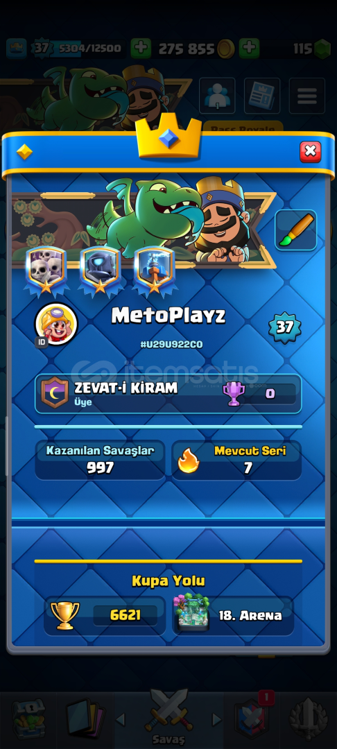 Hesap 6500 kupa. Para yatırılmadı. Bir sürü ifade var. 5 ten fazla evrim var. Hesabı alan kişi kendi mailini bağlayabilir.