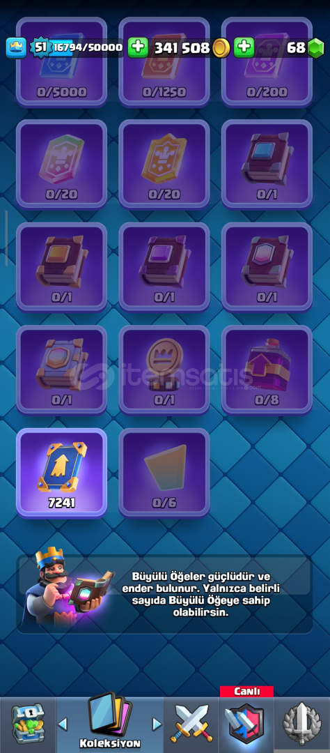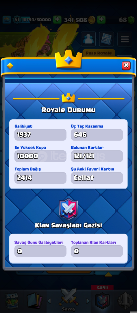 Hesap 11.000 kupa üstüdür 7 tane evrimi vardır. 5 tane elit kartı vardır hesap 8 senelik içerisinde 300k + altın vardır. 8000 adet joker kart mevcut