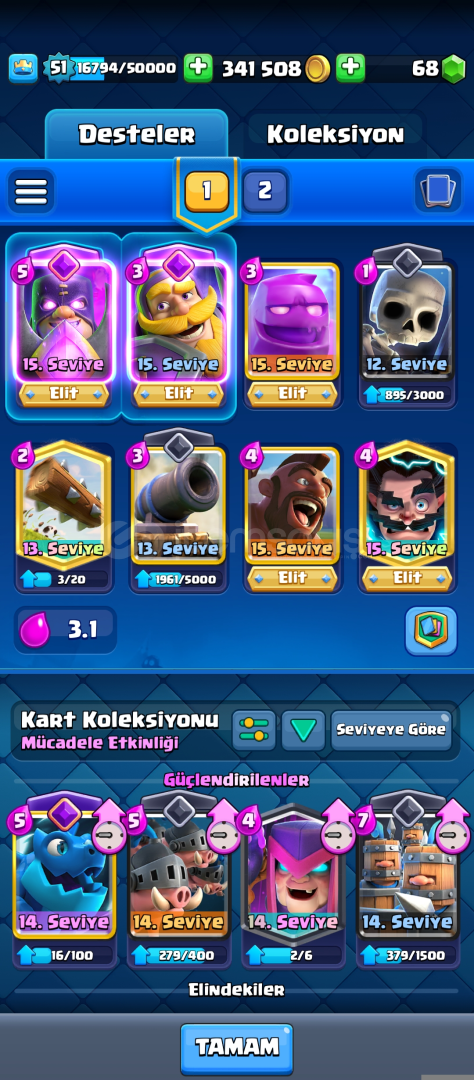 Hesap 11.000 kupa üstüdür 7 tane evrimi vardır. 5 tane elit kartı vardır hesap 8 senelik içerisinde 300k + alt...