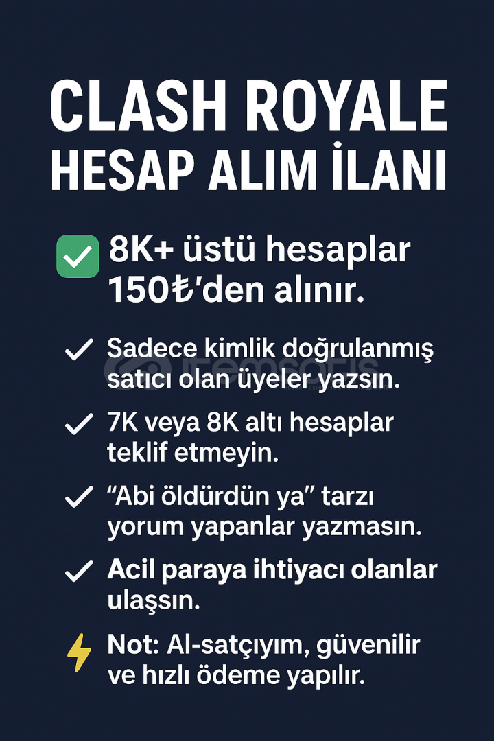 ✅ 8K+ üstü hesaplar 150₺ TEKLİF EDİLİRSadece kimlik doğrulanmış satıcı olan üyeler yazsın.7K veya 8K altı hesaplar teklif etmeyin."Abi öldürdün ya" tarzı yorum yapanlar yazmasın.Acil paraya ihtiyacı olanlar ulaşsın.⚡ Not: Al-satçıyım, güvenilir ve hızlı ödeme yapılır.
