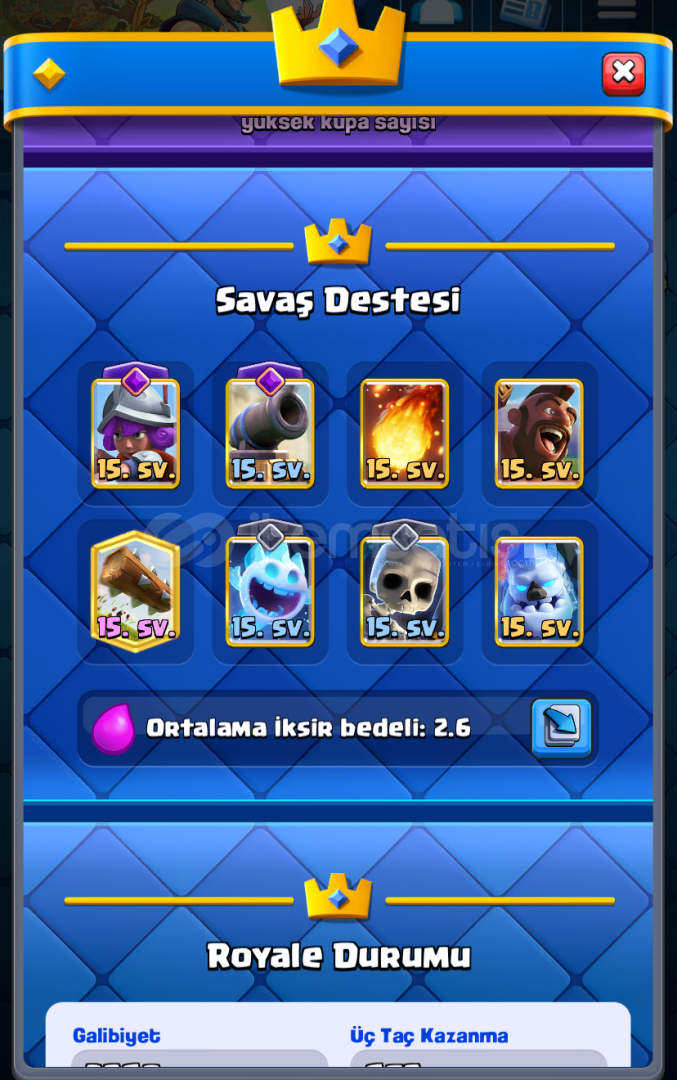 55 deneyim 5 kez nihai olundu 16000 kupa olundu Türkiye 275. Dünya 4041. Olundu 2.6 binici destesi Max ve çoğu şey 14 seviy...