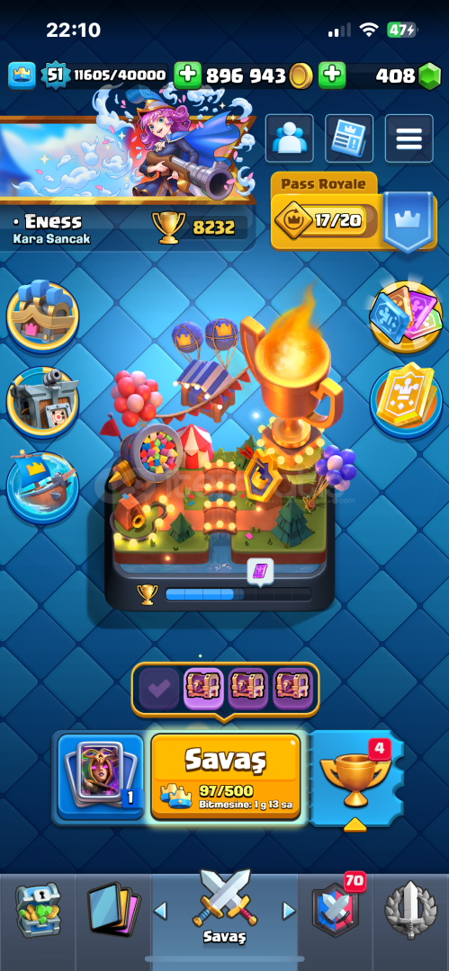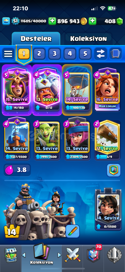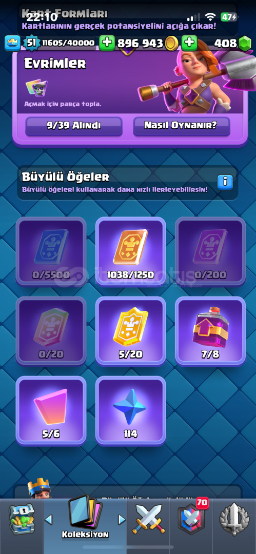 8238 kupadır 21.arena emek hesabıdır 10 tane evrimi vardır tüm kartlar açıktır