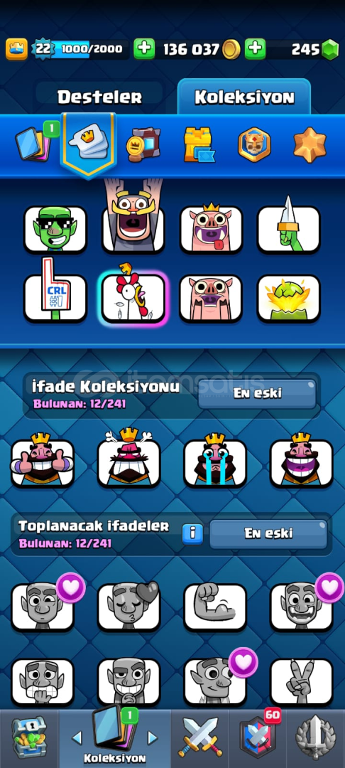 Clash Royele Uygun Satılık 8 Ar. 2500 Hesap