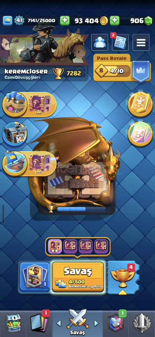 Clash Royale 906 Elmas 90K Altın var.