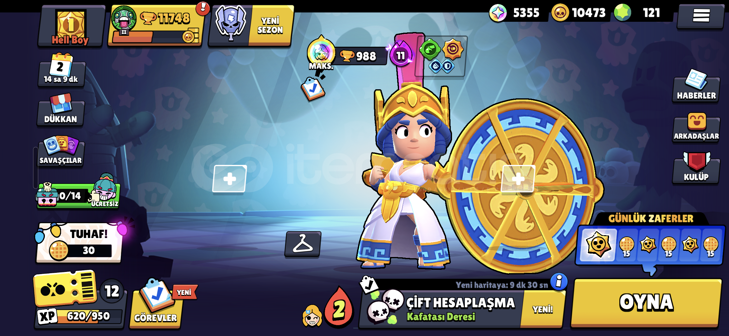 Brawl Stars 120 Elmas 10000 Altın var.