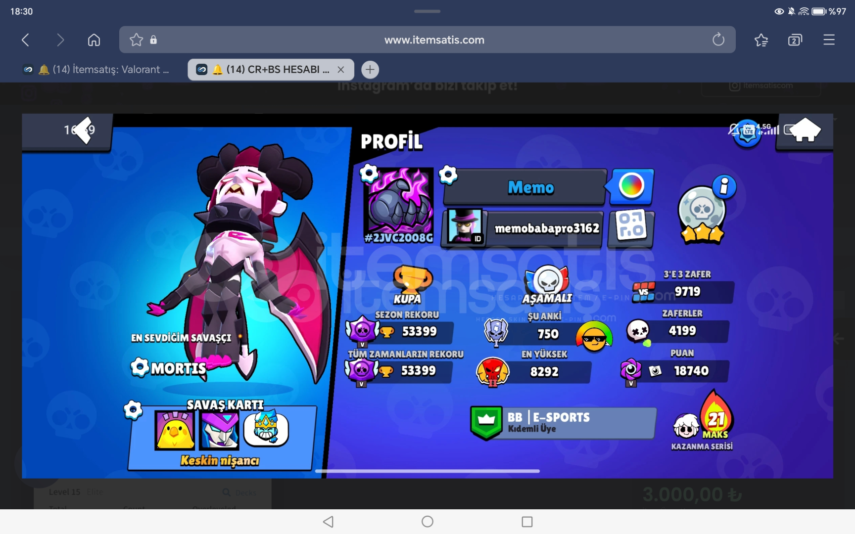Hesap 60 leveldir.26 eliti vardır.Mailinize ekleyebilirim.Hesaba tel numaranızı ekleyebilirim.Hesap tamamen sıze ait olacaktır.ıd de 60k bs hesabı vardır.