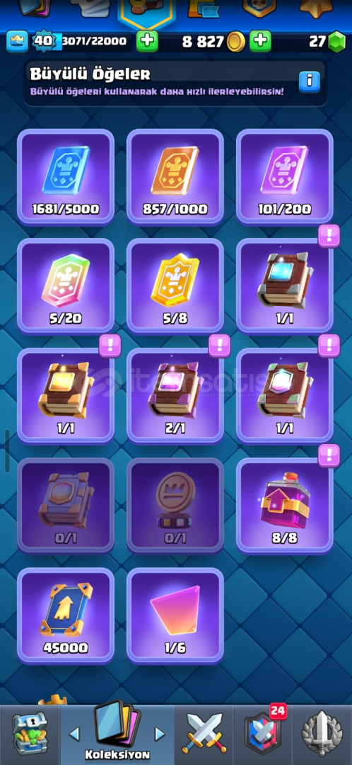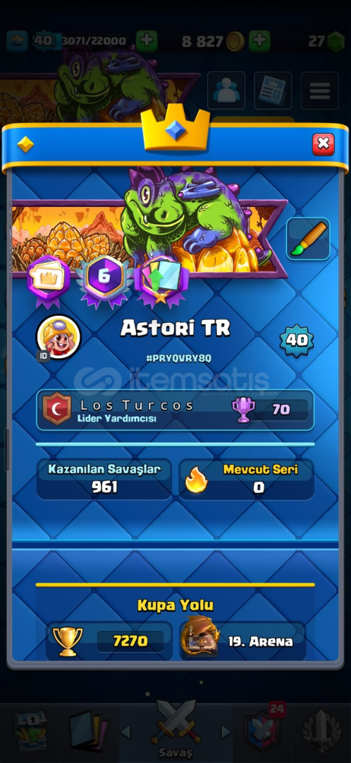 CR HESABI:İskelet ordusu, Cellat, Elektro ejder, Barbarlar, Büyücü, Oduncu, Tesla, Cehennem ejderhası, Avcı ve Okçular evrimleri vardır.Hesap 40 LVL 7270 Kupadır.Birçok kitaplar kitabı vb. şeyler bulunmaktadır, kasılırsa çok güzel bir hesap haline gelebilir.BS Hesabı:Uzun süredir oynanmadığı için 27k Kupadadır. 2019 da açılmıştır ve 2 kes braw...