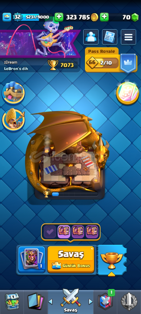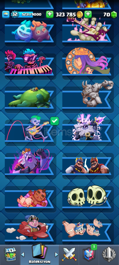 Az oynanmış bs hesabı mevcut yanındaÖncelikle hesapta ücretsiz isim değişme mevcut7000Kupa2 Evrim Cadı, Barbarlarİskelet fıçısı evrimi 3parçaCehennem ejderhası evrimi 3parçaKraliyet hayaleti evrimi 1parçaHesapta 2 adet evrim parçası mevcut alan kişi istediği karaktere basabilir50000 Elit joker kart mevcut 15 seviye basmak icin Kartlar kitabı sıradan mevcutCRL2025 ...