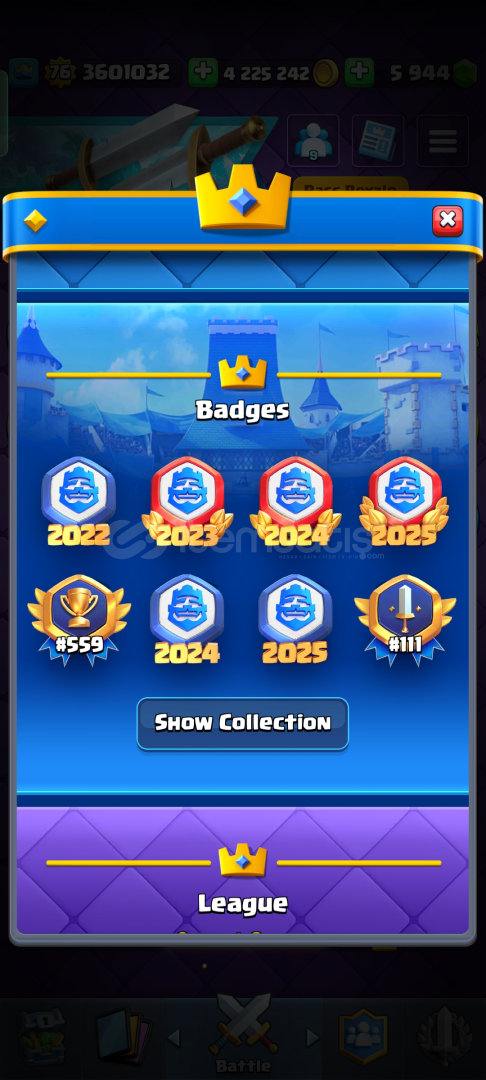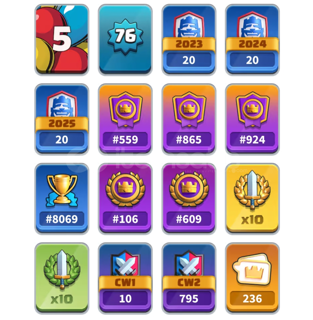 • Dereceli modda Top 500 rozetleri• Global Turnuvalarda Top 100 rozetleri• CRL 2023–2024–2025 20 Win rozetleri• Bugüne kadar CRL’de verilen tüm nadir emojiler hesapta mevcuttur•Bu özellikleriyle Türkiye’de nadir bulunan hesaplardan biridir.• 10× Büyük Mücadele ve 10× Küçük Mücadele tamamlanmıştır• 4.300.000 altın bulunmaktadır• Koleksiyon h...