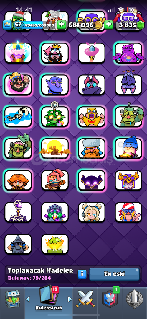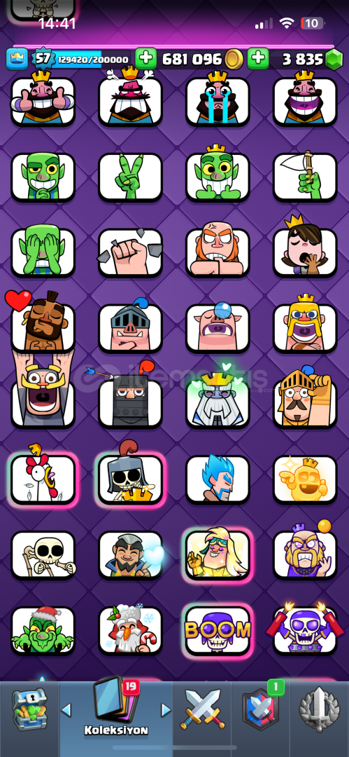 Maxa yakın dolu cr hesabı içinde 4k elmas ve vir sürü özel emoji var parayla alınan. ve vir sürü büyülü öğe var