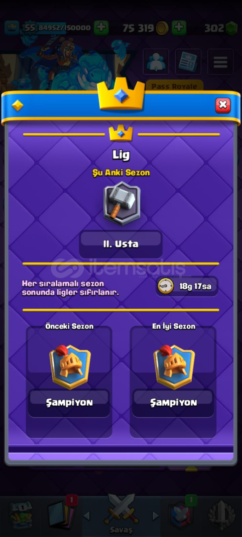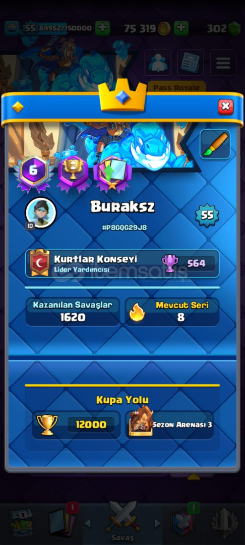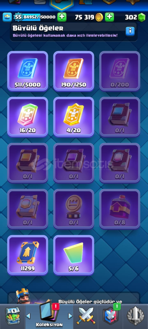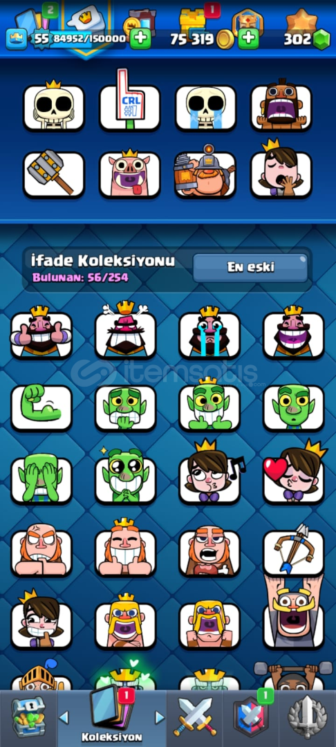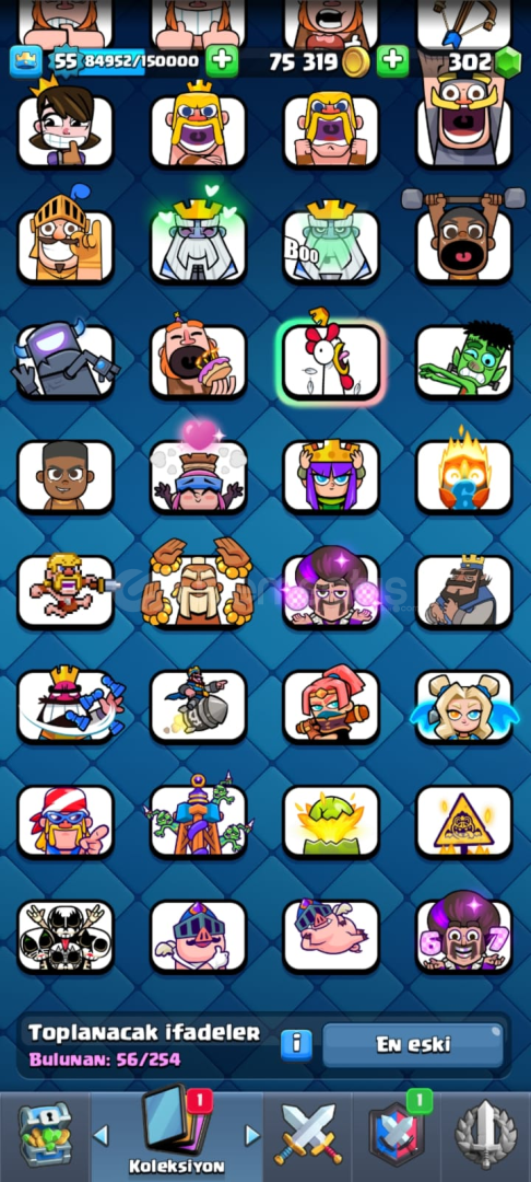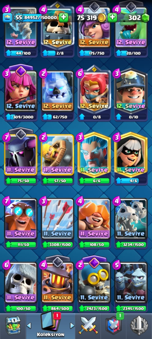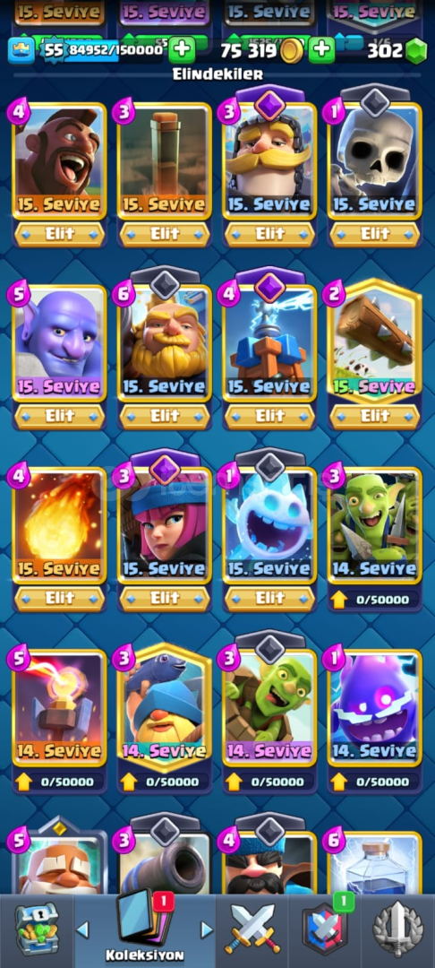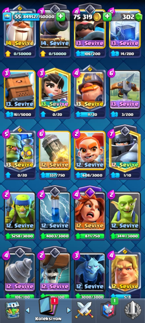 Lig açık,56 emoji,15k kupa 3 kez, 16 efsanevi joker kart,5 evrim parçası, 11 evrim, 15 seviye 11kart, 7 tane 14 seviye kart