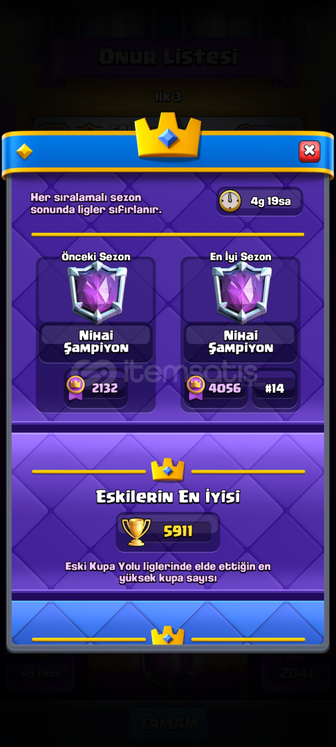 KRALİYET TURNUVASINDA #3 YAPILMIŞTIRGT ROZETİ 10. SEVİYEDİR 🔥LADDER SIRALAMADA 14.LÜK VARDIR2022 CRL 🔥4000 NİHAİ MADALYA YAPILMIŞTIR30 EVRİM 30 ELİTACİLİYETTEN SATIYORUM PAZARLIK cüzi MİKTARDA MAKBULDUR. 1nstagr∆w= bnymn_0ztrk_