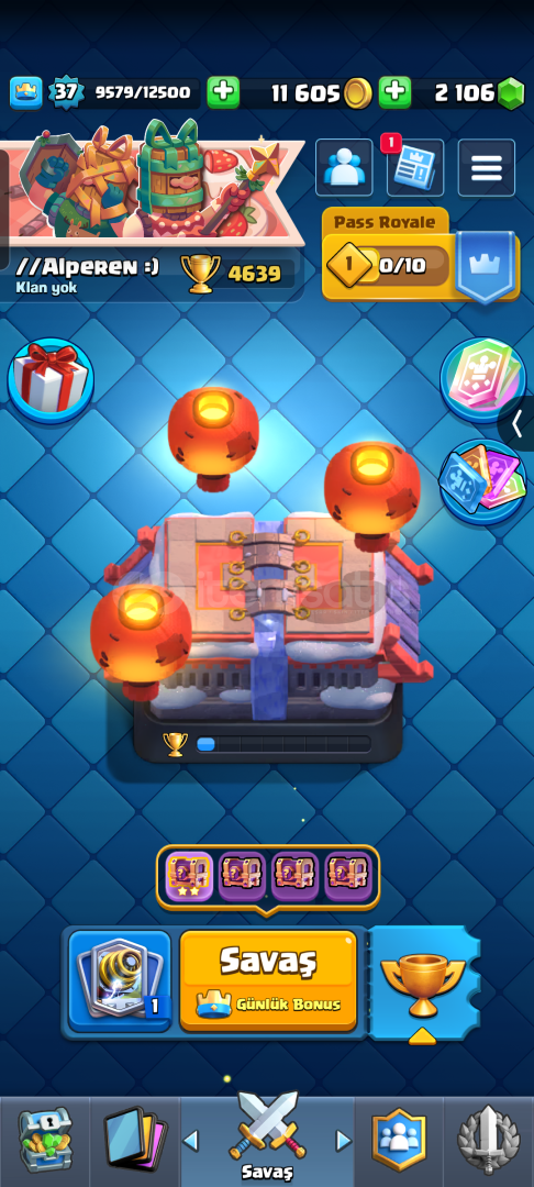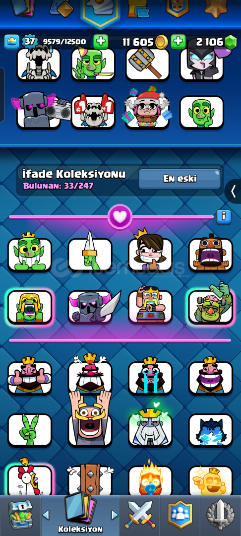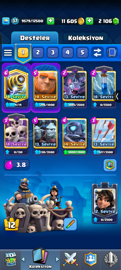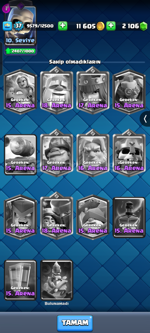 hesap 4600 Kupadır sarmaşık hariç 14. arenaya kadar olan tüm kartlar açıktır. Hesapta 107 kart vardır.
