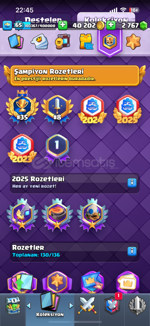 Bir daha asla türkiyede bulamayacağınız bir hesap tüm detaylar videoda crl emojileri ve kraliyet turnuvası emojisi olan boş hesapları bile 1000$ a satmıyorlar siz düşünün 1500$ lık hesap çok acil nakite sıkıştığımdan dolayı bu fiyat… seri teslimat