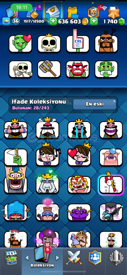 CR hesabında bol emoji ve 1700 taş vardır