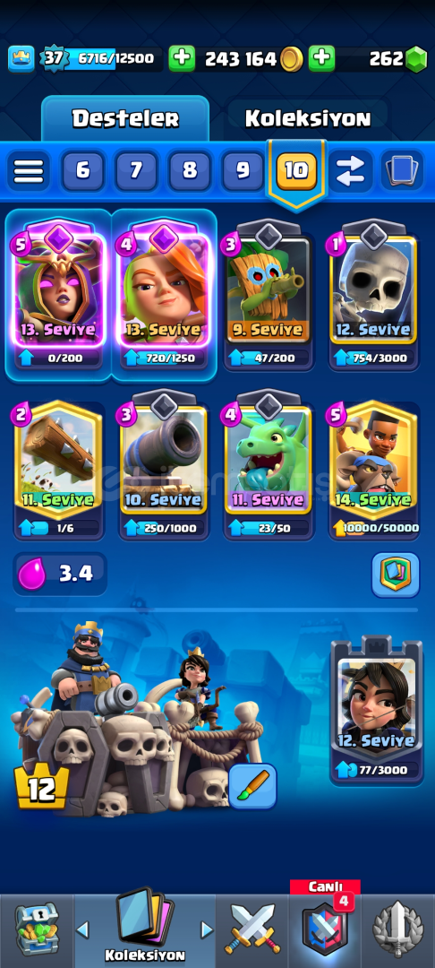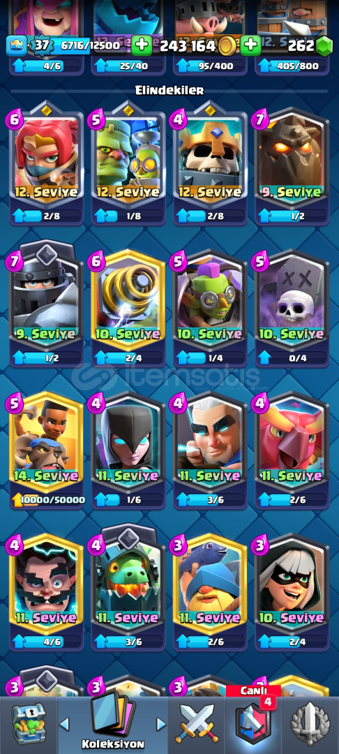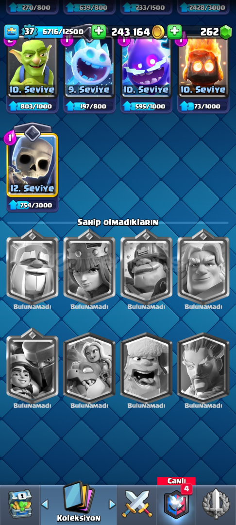 Hesapın levelleri arenaya göre çok yüksektir Evrimleri kalitelidir barbar,valkur, cadı, bombacı gibi.10 karakter açılmayan Mail DEĞİŞİR Alana hayırlı olsun