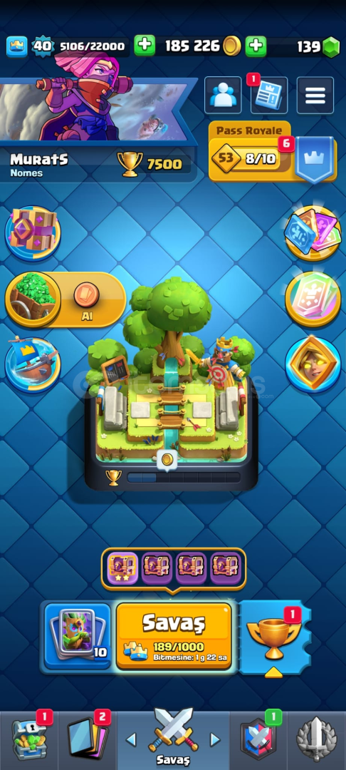 Clash royale hesabında 8 evrim 7 kahraman birde dev kahraman vardır 7500 kupadır 139 elmas vardır