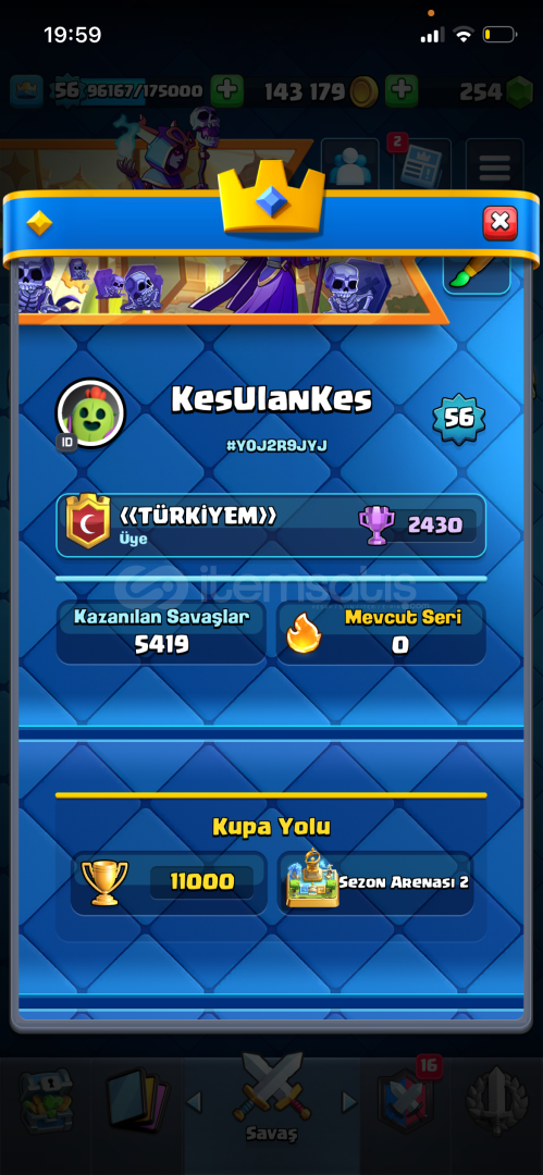 Hesap 6 yıllıktır fotoğraflardaki gibi sağlam bir hesaptır bütün karakterler bardır 11 k kupası vardı 11 elit vardır 5 evrimi bulunmaktadır fiyat konusunda üzmem indirim yaparım abartılmıycak kadar piyasanın altından veriyorum kaırmayon alıcına hayırlı olsun İNSTAGRAM:Alperen.kxz video isteyebilirsiniz TEK BAĞ
