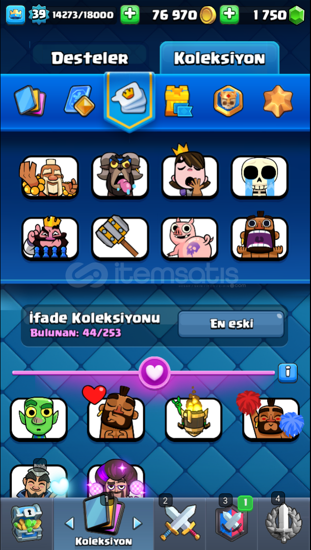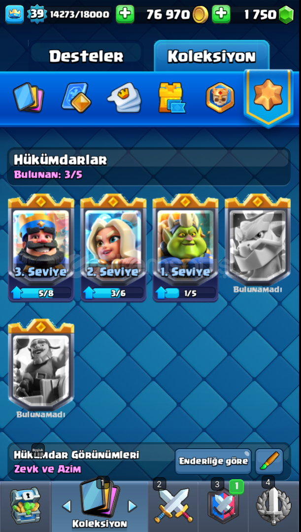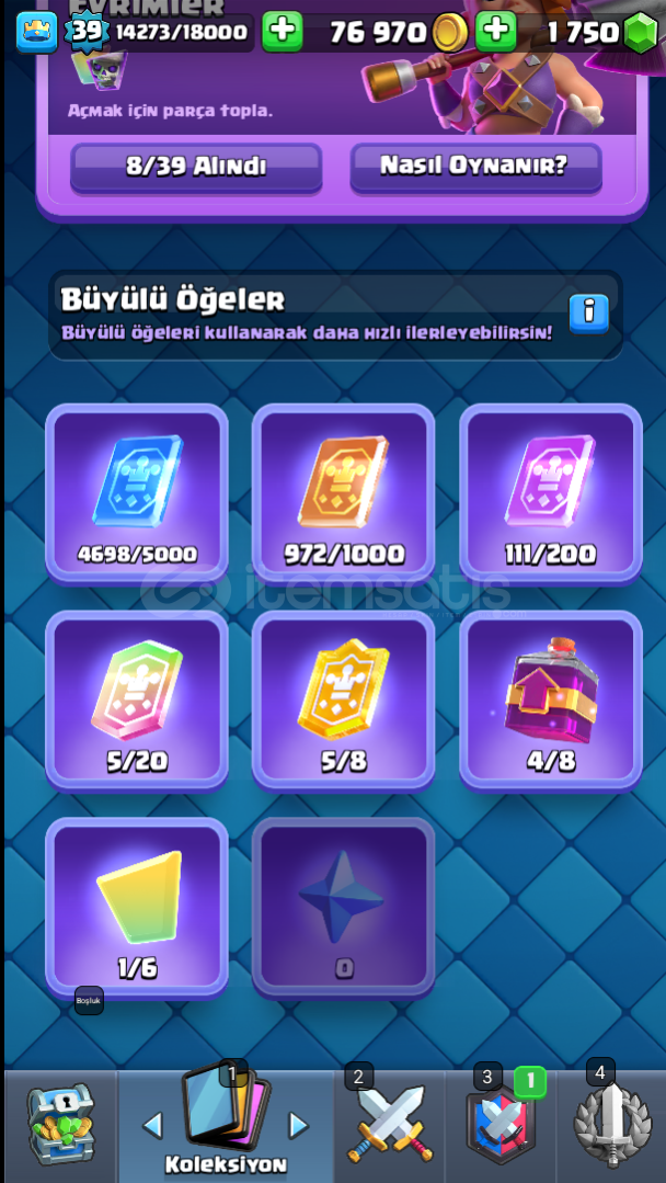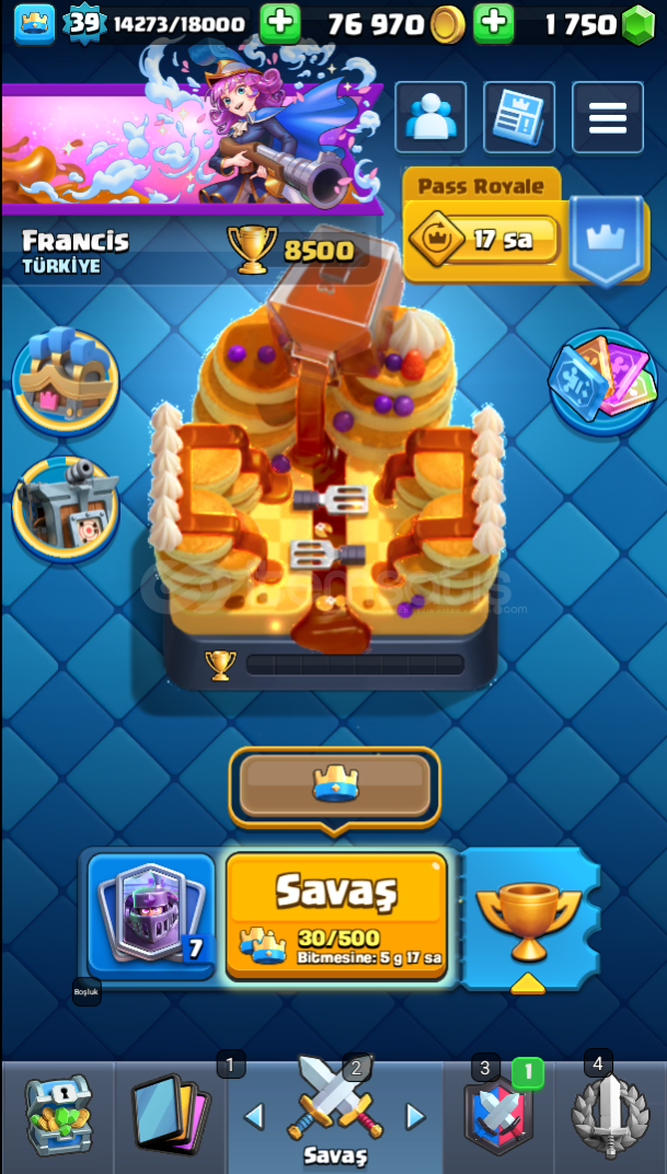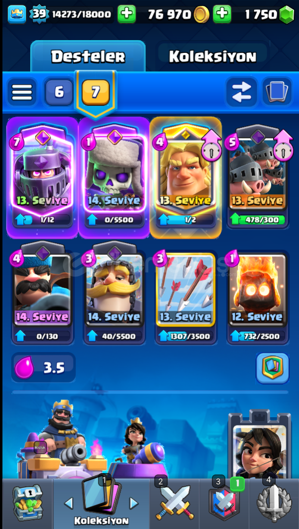 8500 kupa1750 taş44 ifade çok güzel toxic emojiler mevcut3 kule görünümüevrimler: Mega şovalye, İskeletler, Cadı, Electro ejder, Büyücü, Tesla, Okçular, Barbarlar3 İskelet fıçısı, 3 Cehennem ejderi, 3 Dart goblini, 2 Kraliyet hayaleti ve 1 Joker parça mevcut