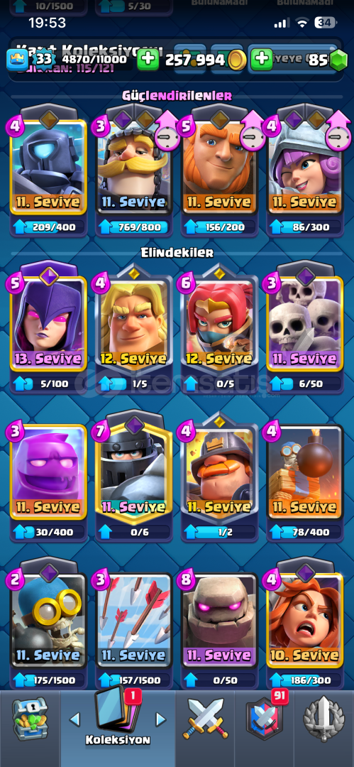 28 Emoji vardır çoğu toksik emojidir. 33Level 6822 k kupa. 3 evrimli bunlar cehenem ejderhası,cadı,avcıdır. 115 karakter 6 tanesi eksik 2 kule birliği vardır.Hesap ucuzdur.Hesabı siz kendi mailinize bağlicaksınız hesabın kendi maili değişip sizin mailinize verilecek sorunsuzdur.