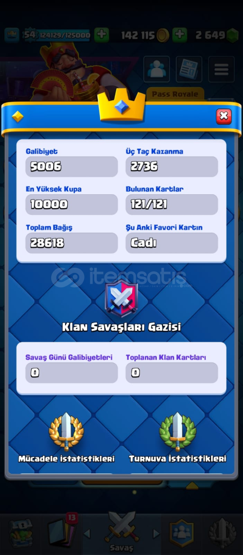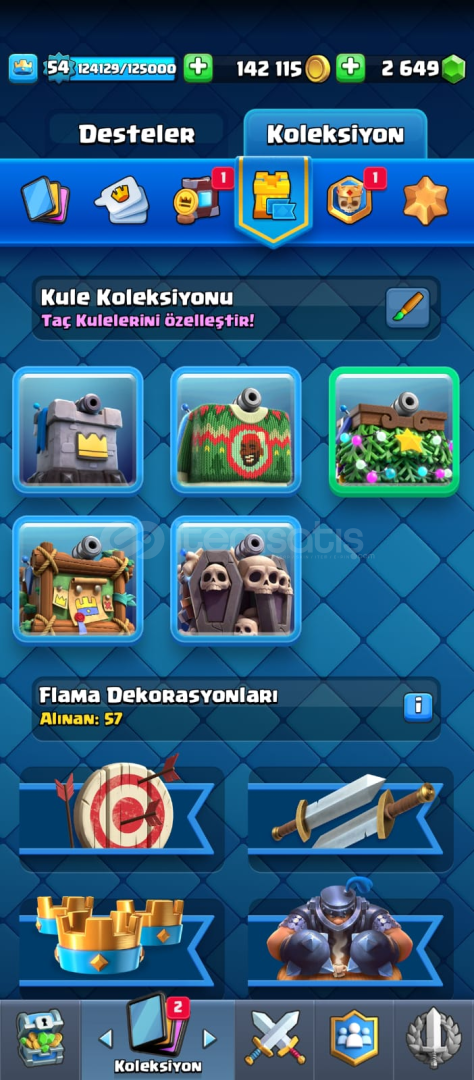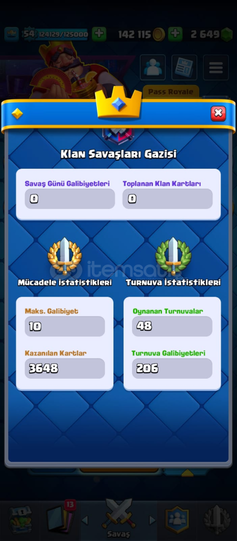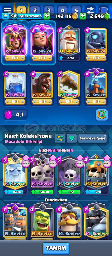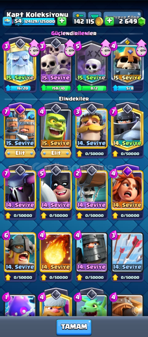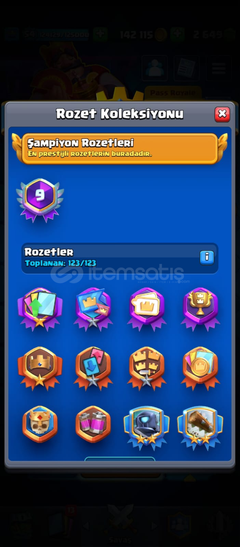 15 k kupa1 - Hükümdar60 + emoji5 Kule koleksiyonu123 / 123 rozet54 level15 level kuleler5000 + galibiyet9 Elit2500 gemsVe dahası !