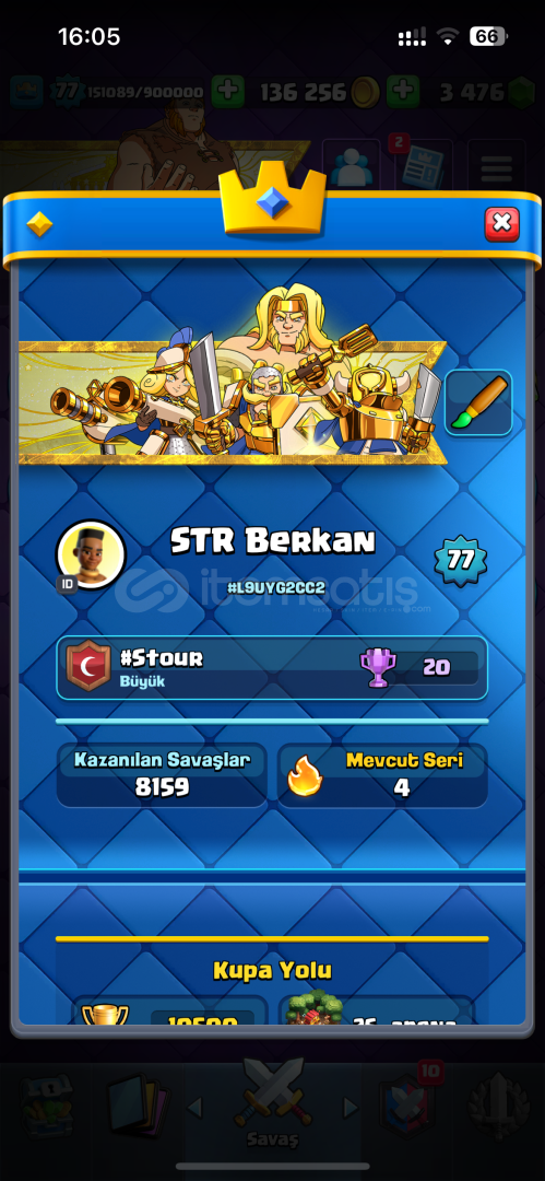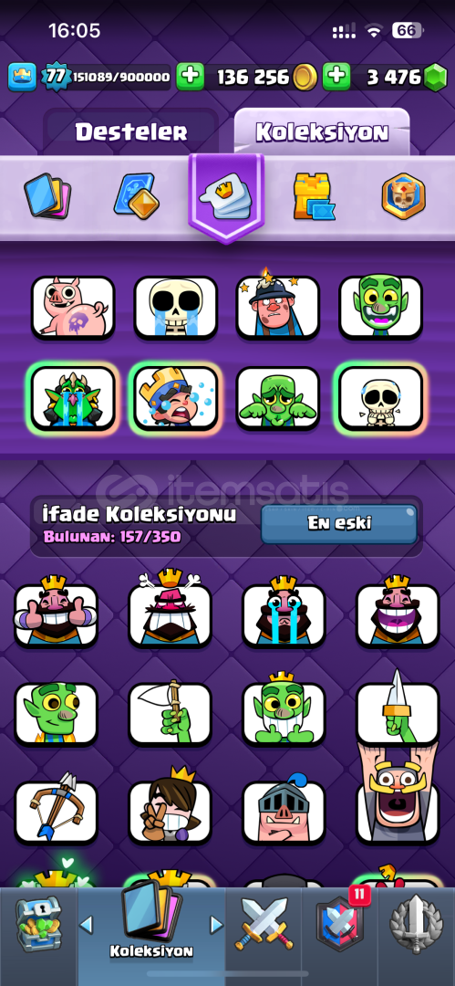 77 level full 15 2 tane 16 level . 150+ emoji 4bin taş.31 tane evrim. Envanteri dolu hesap. Altin olursa 16 level yapilacak kartlar var.#L9UYG2CC2