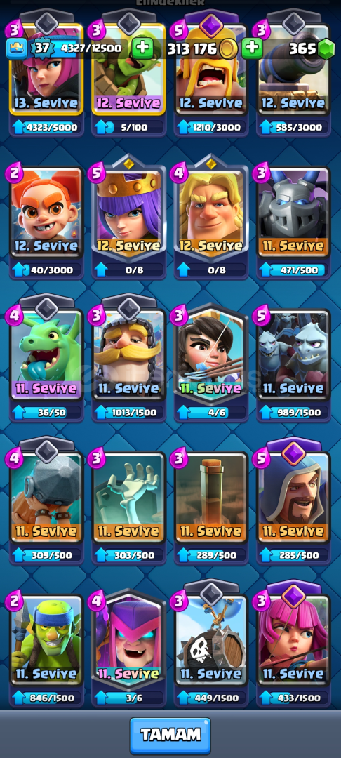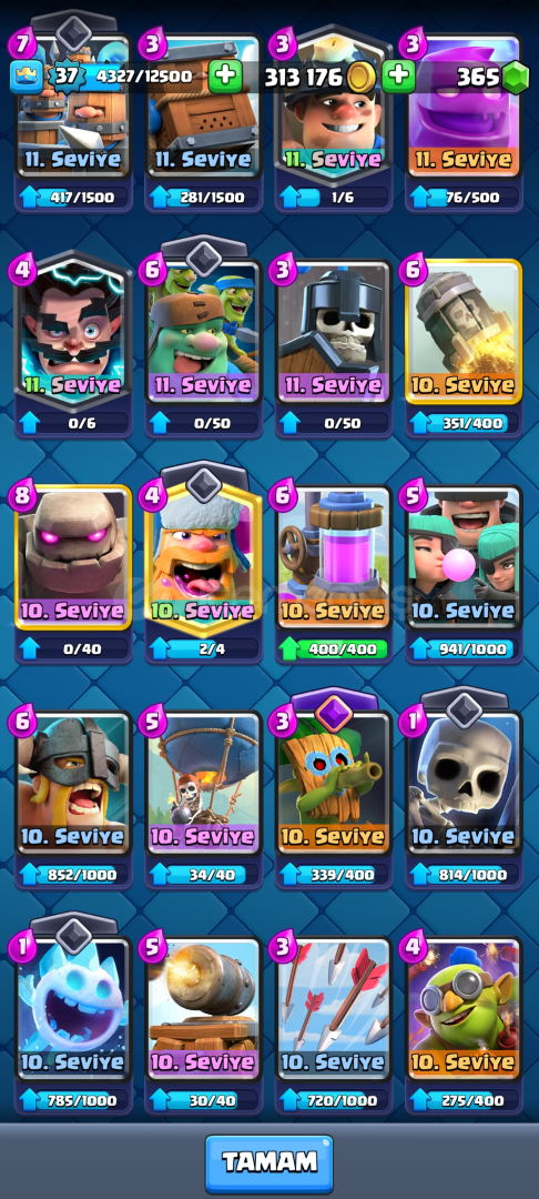✅HESABIN ID'Sİ👉#UV0UCCVRV ROYALE APİ SİTESİNDEN HESABA DETAYLICA BAKABİLİRSİNİZ✅HESAP 7.525 KUPALIDIR✅37 SEVİYEDİR✅313 BİN ALTIN VE 365 ELMAS VARDIR ✅116 KART VARDIR ✅KART SEVİYELERİ YÜKSEKTİR✅CADI VE TESLA 14 SEVİYEDİR ✅ ELEKRO EJDER, TESLA , BÜYÜC&Uum...