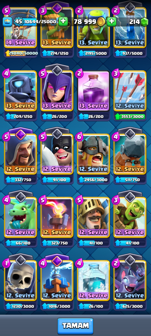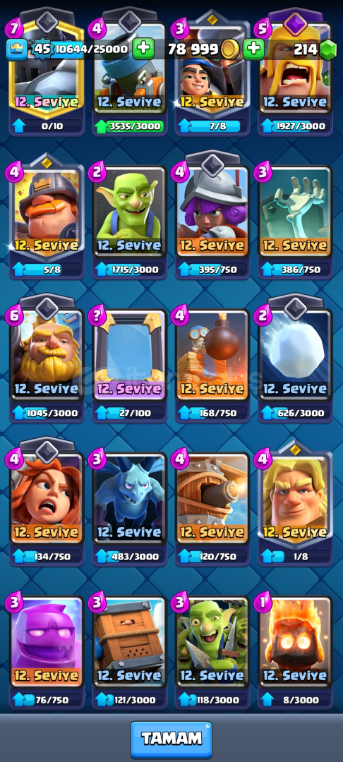 [GMAİL TESLİM] 9.1K 45 LVL 9 EVRİMLİ CR HESABI