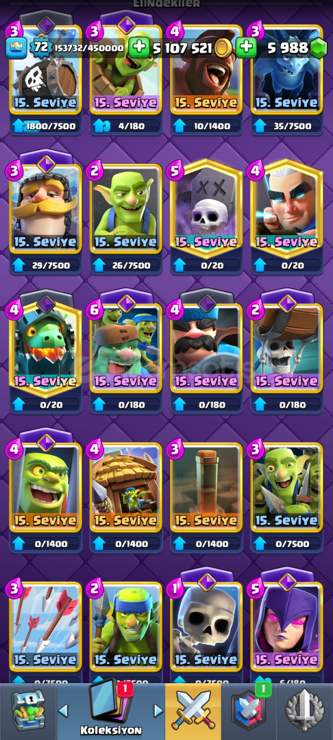 --- SELAMN ALEYKM---- 72 Lvl 75 elit gerisi Max 21 evrim 5 m altın yıllanmış şarap efsane ötesi FIRSAT HESABI- 16 Bin Win - çoğu desteği Max şekilde oynatır - 9 tane evrimin 3 er adet evrim parçası kaldı- bütün kule birlikleri 15 LeveL- 13 adet kule görünümü - 167 Emoji- Flama dekorasyon 182 adet- Flama çerçeveleri 205 adet&...