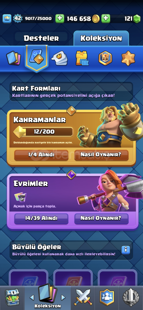 Hesabım satılıktır 8050 kupa 14 evrim vardır bütün kartlar vardır