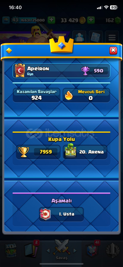 7959 Kupa 9 evrimli 14 Seviye kral kulesi 15 Seviye okçu ve top mainlik hesap e postası değişicektir
