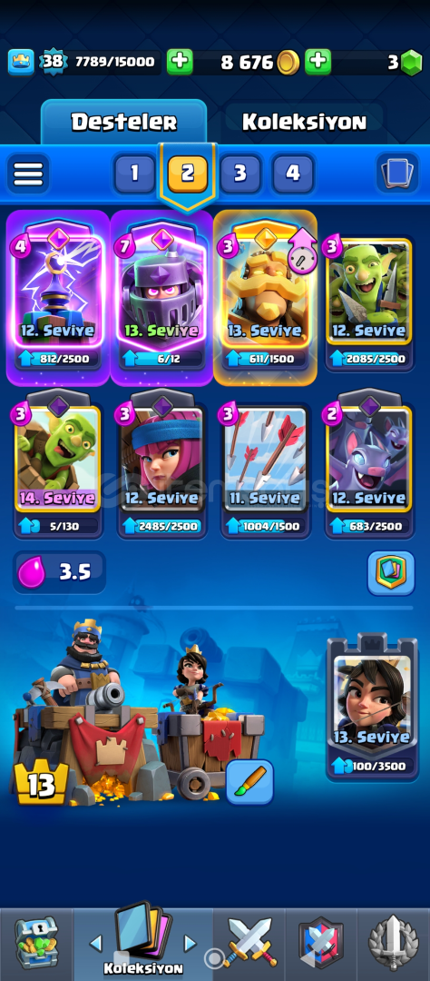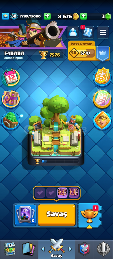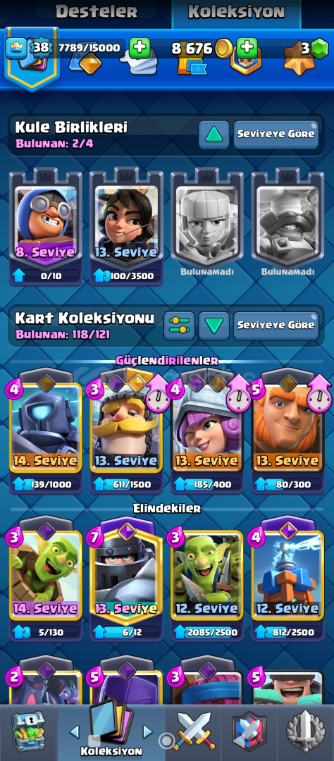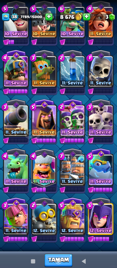 Hesap boş gmaile bağlıdır. (Pazarlık olur) 38 lvl7526 kupa118 karakter7 evrim cadının 1 parçası eksikEvrimler;Mega şovalyeTeslaBarbarlarOkçularElektro EjderhaDuvar YıkıcılarBüyücüCadı(1 parça eksik)50 adet emoji3 tane kule görünümü37 flama47 Flama çerçevesiKahramanŞovalye