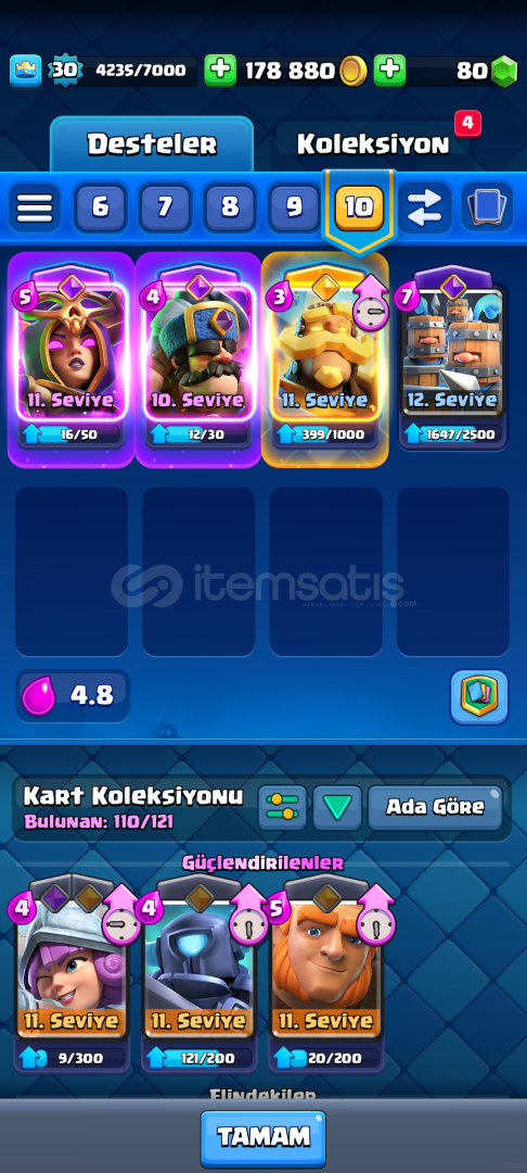 Evrimleri yarim olan kartlar silahşör 2/6 kraliyet hayali 1/6 iskelet fıçısı 5/6 Fırın 3/6
