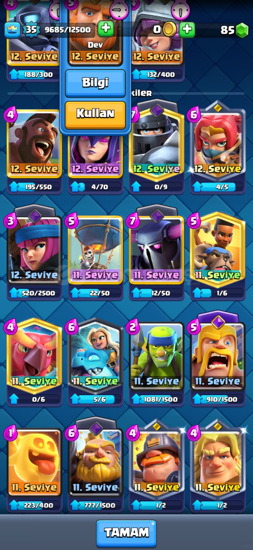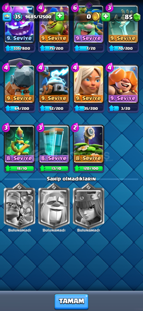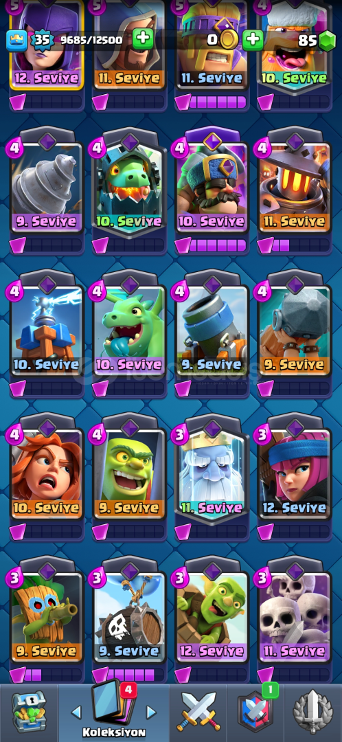 Herşey fotoğraflarda vardır hesabın ID si #Y2YPR9JQJ En düşük lvl 9 lvl dir daha az lvl li olan kart bulunmamaktadır