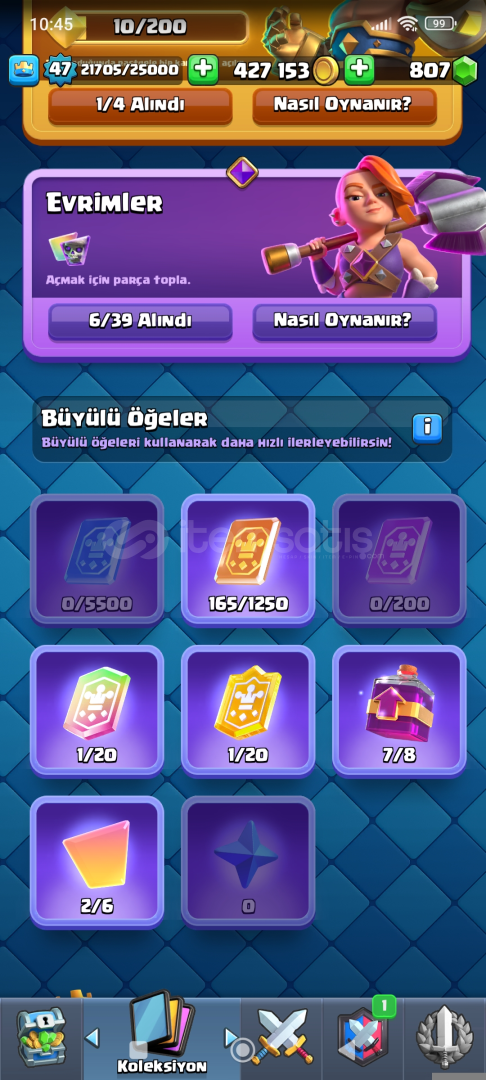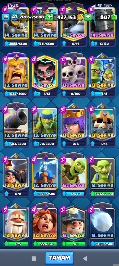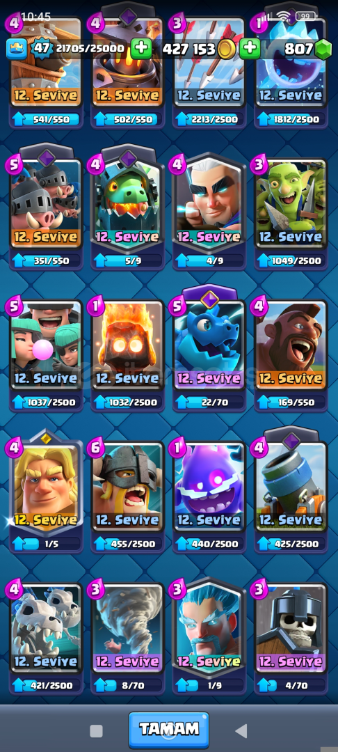 (MAİL TESLİM) 10K 47 LVL 6 EVRİMLİ CR HESABI