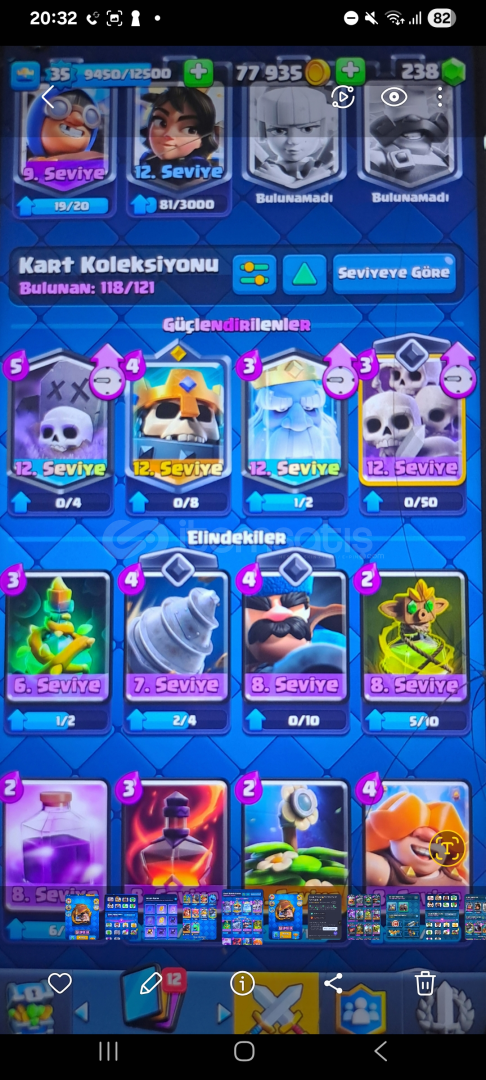 ✅️HESAP 7000 KUPADIR✅️3 YILLIK HESAPTIR✅️35 SEVİYEDİR✅️77BİN ALTIN VE 238 ELMAS VARDIR✅️118 KART VARDIR✅️KART SEVİYELERİ ÇOK YÜKSEKTİR✅️