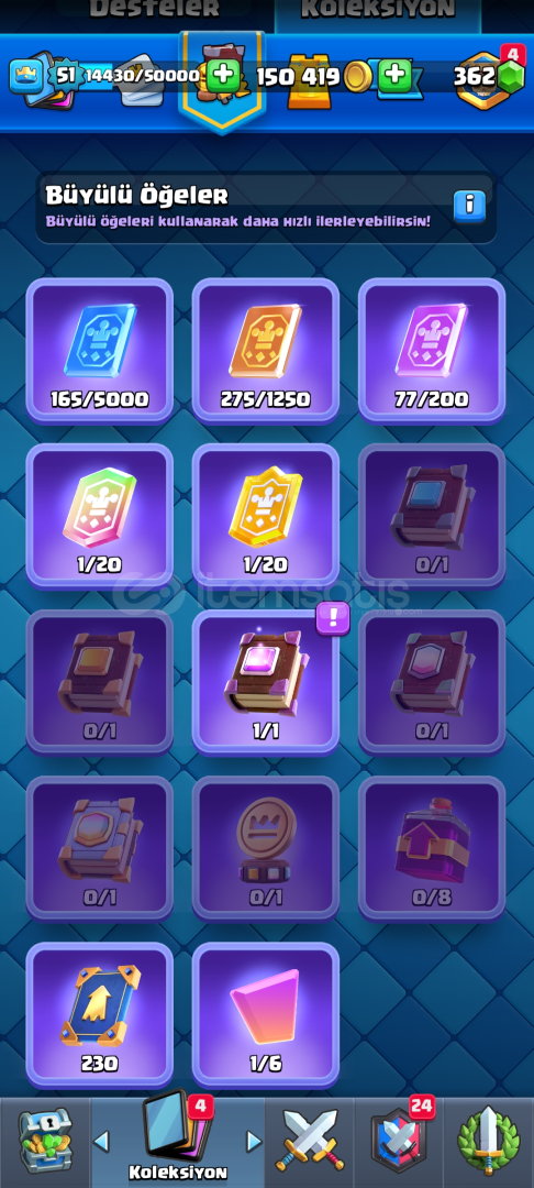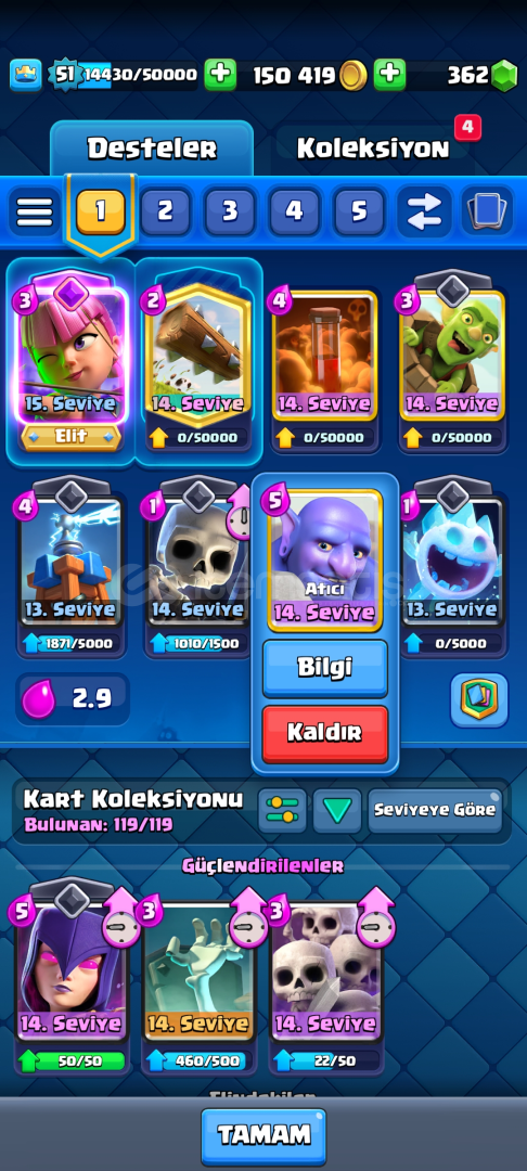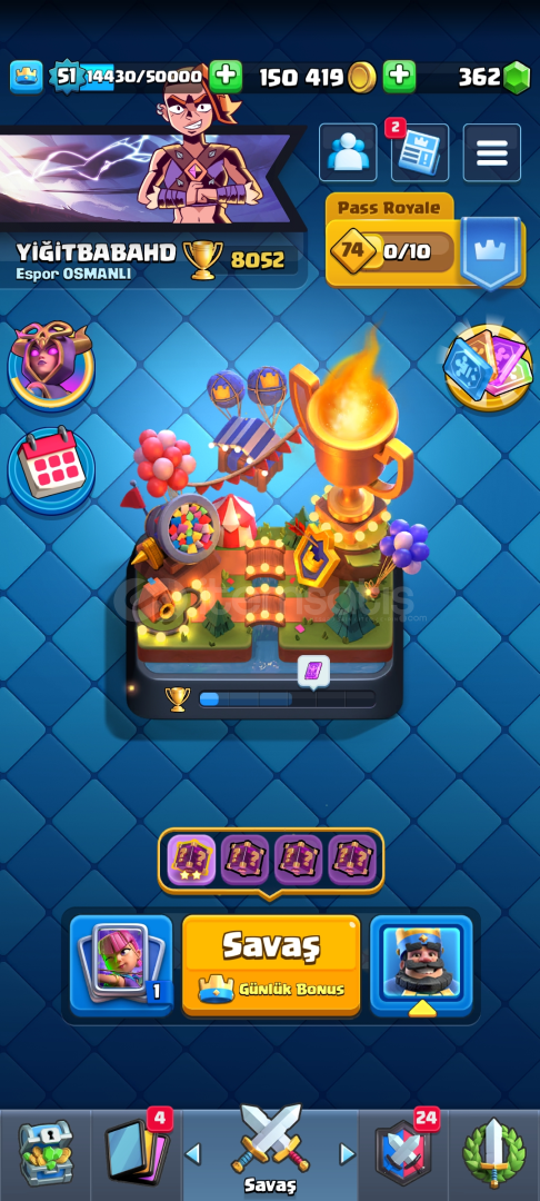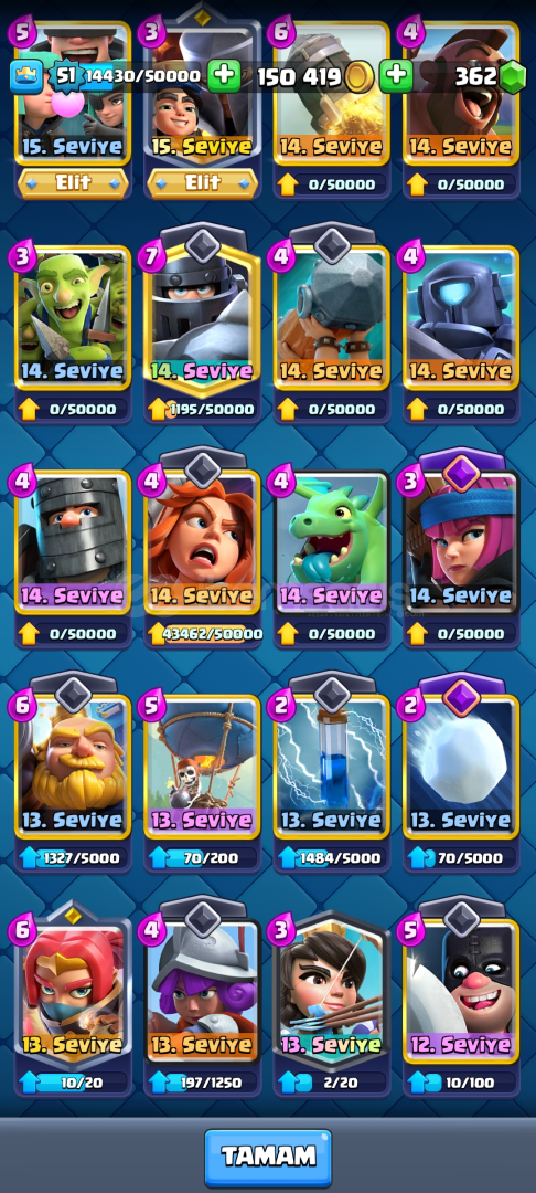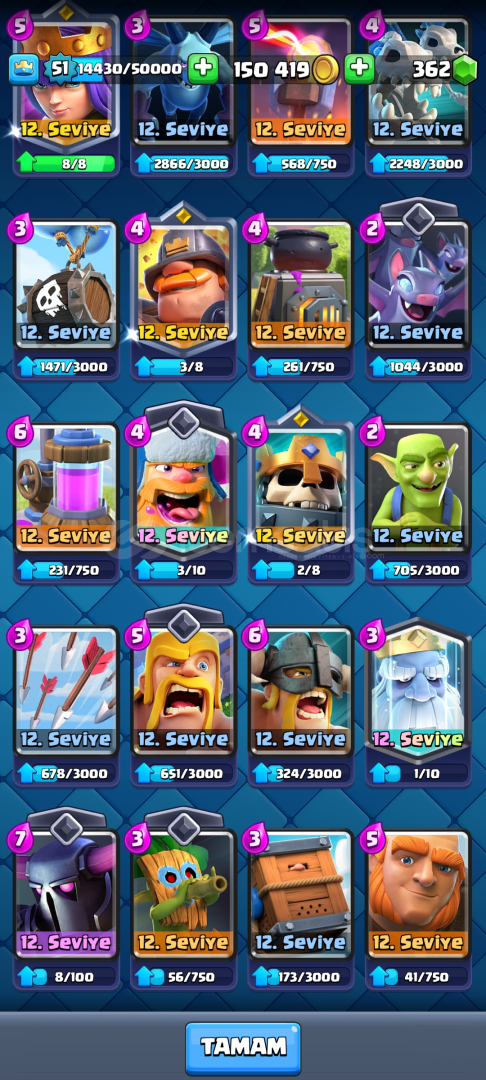✅HESAP 8052 KUPALIDIR✅51 SEVİYEDİR✅6 YILLIK HESAPTIR ✅150 BİN ALTIN VE 362 ELMAS VARDIR ✅BÜTÜN KARTLAR AÇIKTIR ✅KART SEVİYELERİ ÇOK YÜKSEKTİR ✅OKÇU, KÜÇÜK PRENS VE SERSERİLER ELİT SEVİYEDİR✅FİŞEKÇİ KAR TOPU OKÇU VE BOMBACI VARDIR ✅FLAMA VE EMOJİLERİ BOLDUR ✅BÜT...