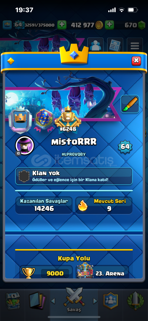 DETAYLI VİDEO İÇİN YAZABİLİRSİNİZMAX LEVEL BOSS HAYDUT MEVCUT !!!HESAP 8 YILLIKTIR.HER SEZON NİHAİ LİGE ÇIKILMIŞTIRBÜTÜN ŞAMPİYON KARTLARLI MAXTIRSADECE 3 KART MAX DEĞİLDİR*HESAPTA 18 EVRİM VARDIR*13 KULE GÖRÜNÜMÜ MEVCUTTUR*5 SEZON ROYALE PASS ALINMIŞTIR*YAKLAŞIK 10K PARA YATIRILIP 8 YILDA EMEK VERİLMİŞTİR[HESABIN İLK SAHİBİ...